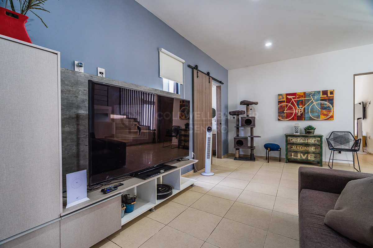 En el primer nivel, disfruta una recámara secundaria con baño completo, una amplia área de TV abierta y un baño completo adicional, perfecta para momentos familiares o de descanso.