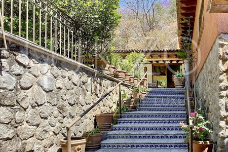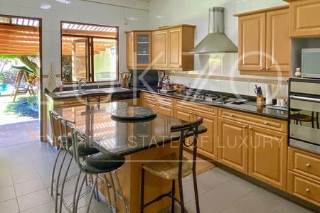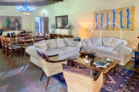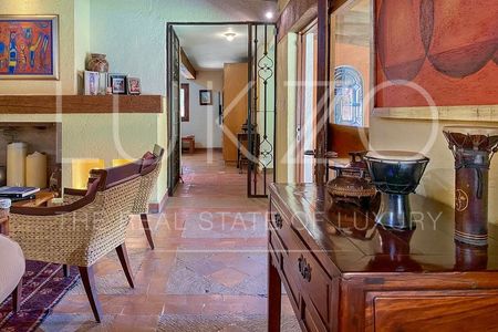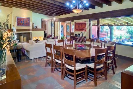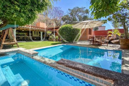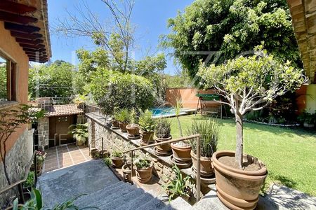 Cuenta con buen jardín con alberca, linda terraza y la recámara principal tiene salida interdependiente al jardín. Estancia, terraza interna, sala y comedor abiertos, sala de TV, cocina integral con alacena y la recámara principal con baño y vestidor amplísimo también se ubica en la planta baja.