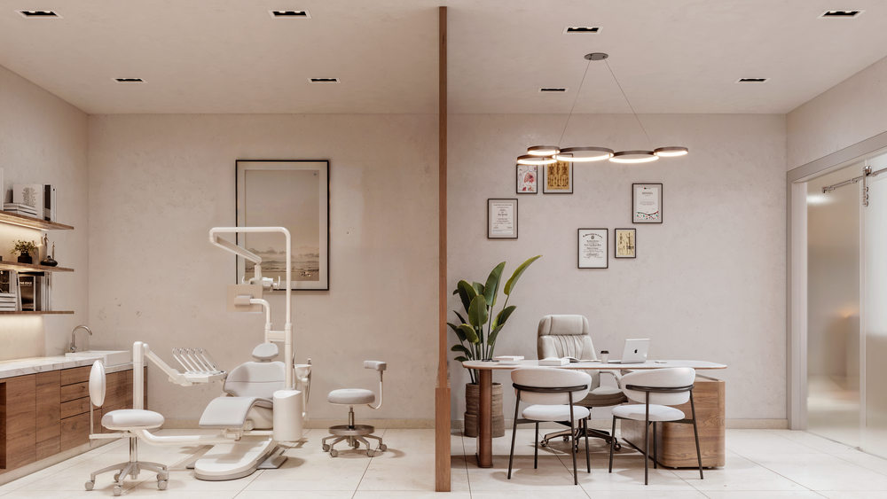 Este espacio optimiza cada rincón con escritorio, repisas, iluminación y detalles pensados para una atención profesional