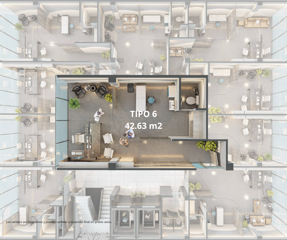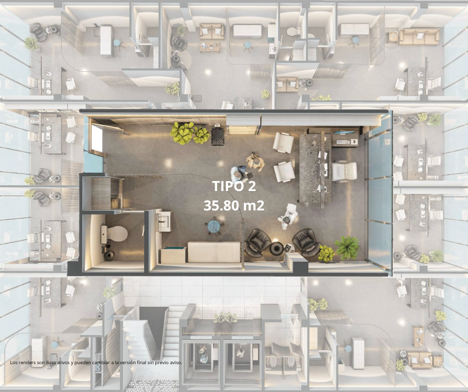 (Los consultorios de 42m2 se pueden dividir en 2)