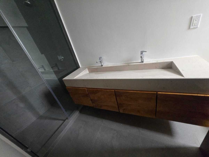 Se entregan terminados con mármol en baños, cocina de granito, y pisos a elección del cliente (cerámica, porcelanato, alfombra o laminado). No se entregan closets.
