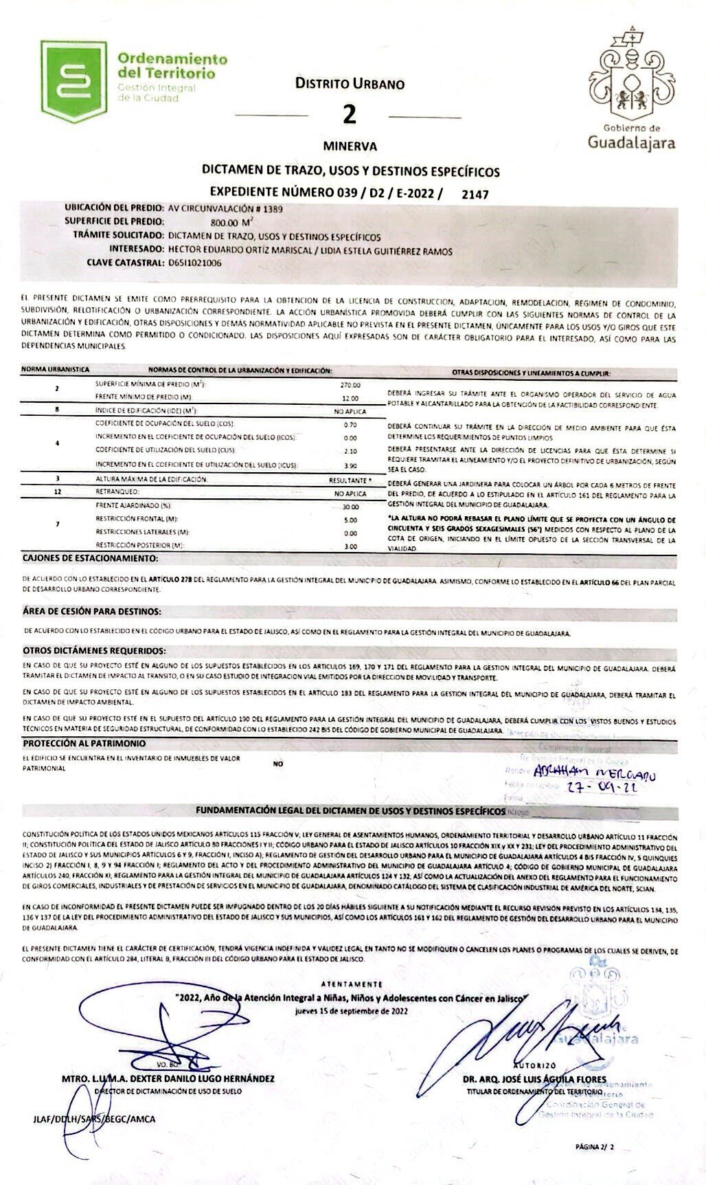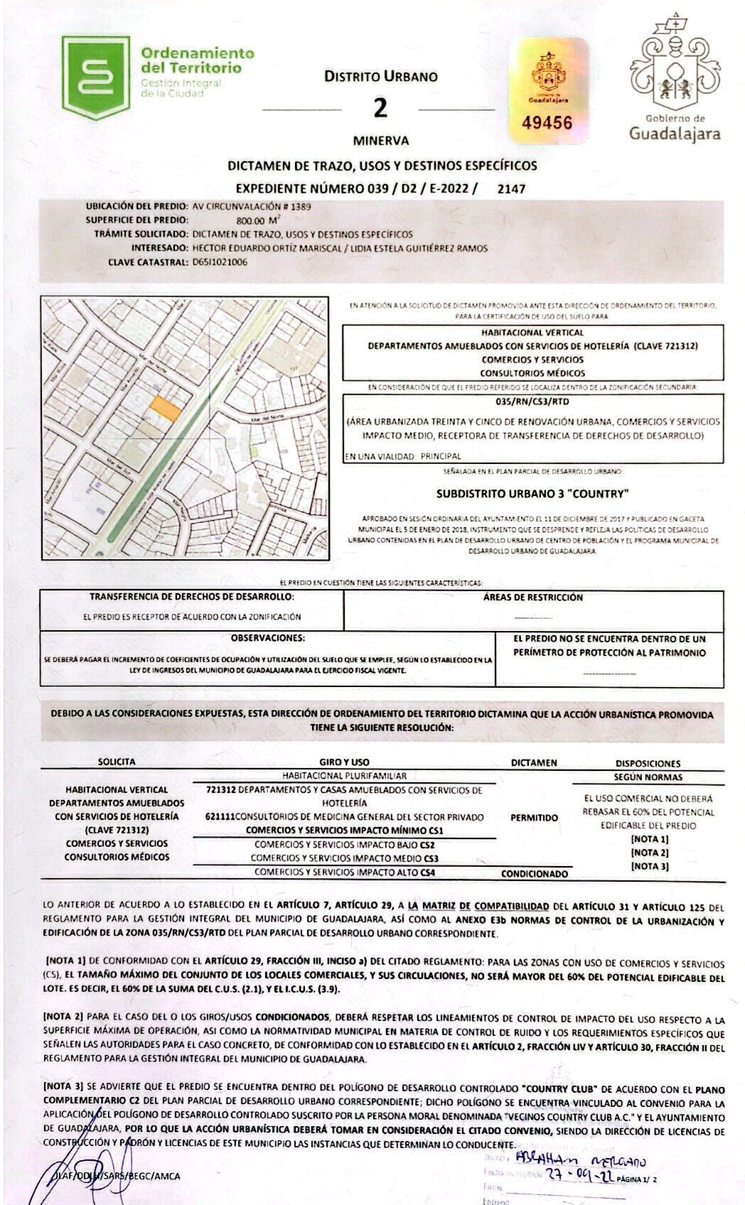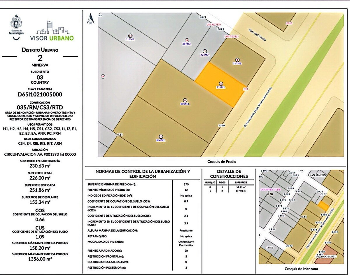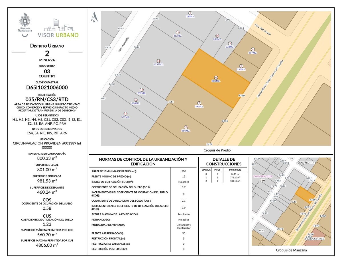 SUSCEPTIBLE DE VARIOS PROYECTOS DE INVERSIÓN, GIROS Y USOS, LOS PLANES PARCIALES PUBLICADOS EN GUADALAJARA EN ENERO 2018 HABILITAN EL PREDIO PARA SU VERTICALIZACIÓN, AUMENTANDO SU POTENCIAL DE DESARROLLO, SE PUEDEN EDIFICAR HASTA 8.5 NIVLES PREVIA AUTORIZACIÓN. SIN CONTAR SOTANO DE ESTACIONAMIENTO.