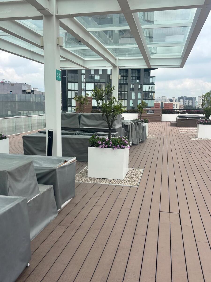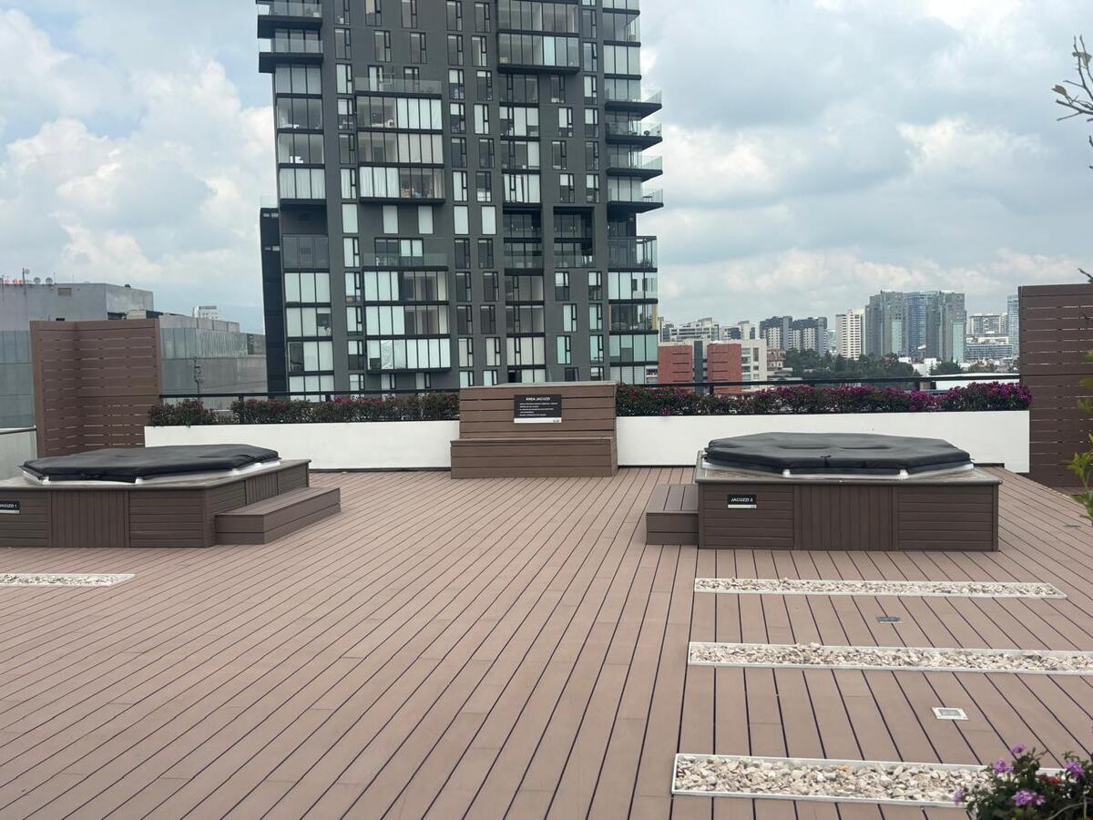 Alberca techada, gimnasio, salon de spinning, ludoteca, business center, jardin con juegos y asadores, roof garden con jacuzzi, seguridad 24 horas