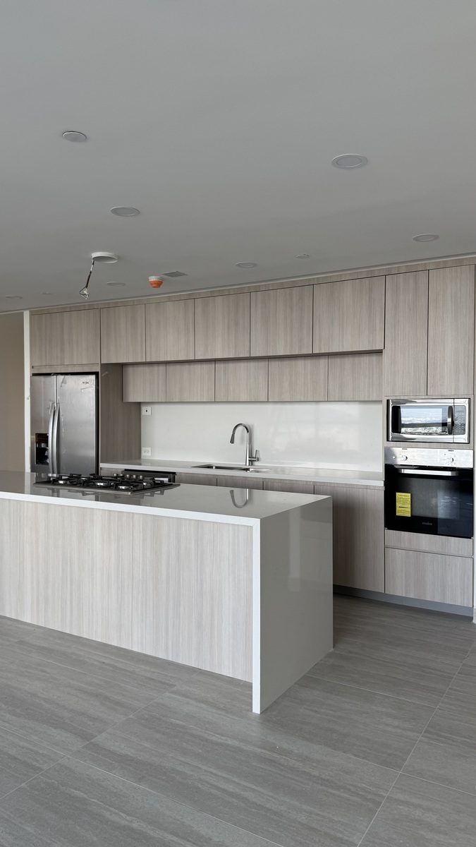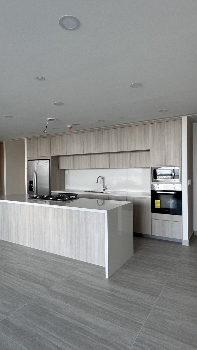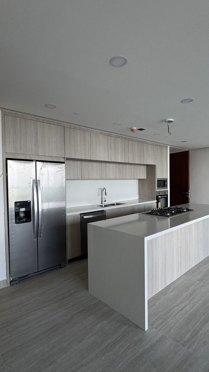 • Cocina equipada con refrigerador doble, campana, estufa de gas, horno, microondas, lavavajillas y boiler