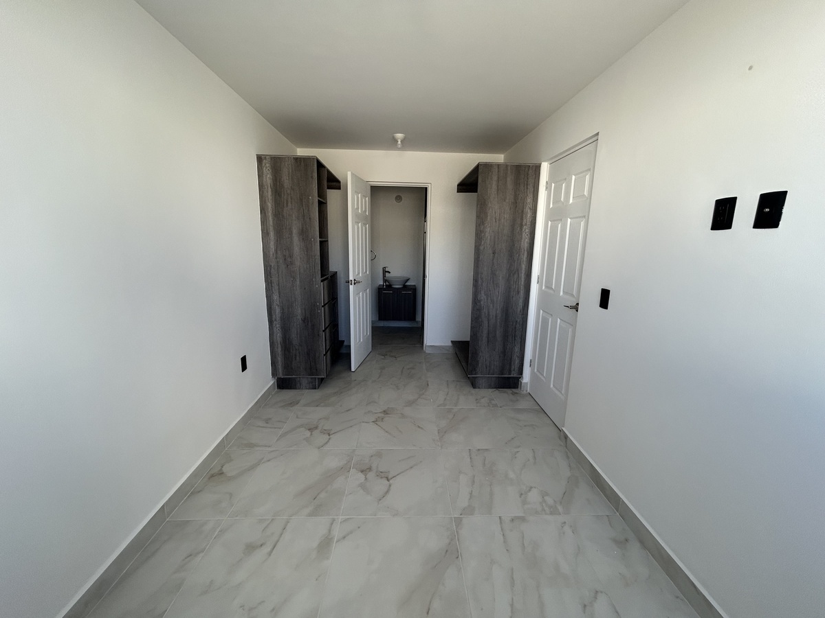 El departamento cuenta con 3 recámaras (con clóset), 2 baños completos, la recámara principal con baño integrado y walk-in closet.