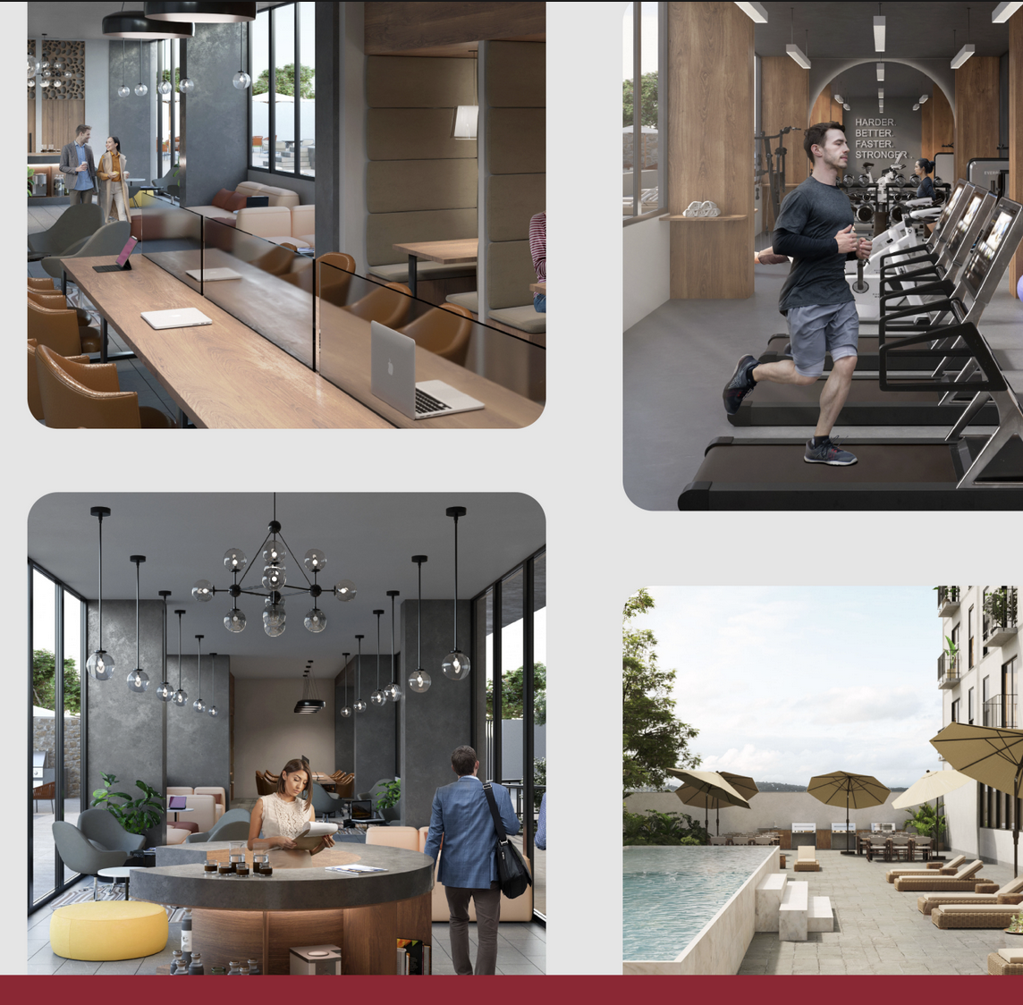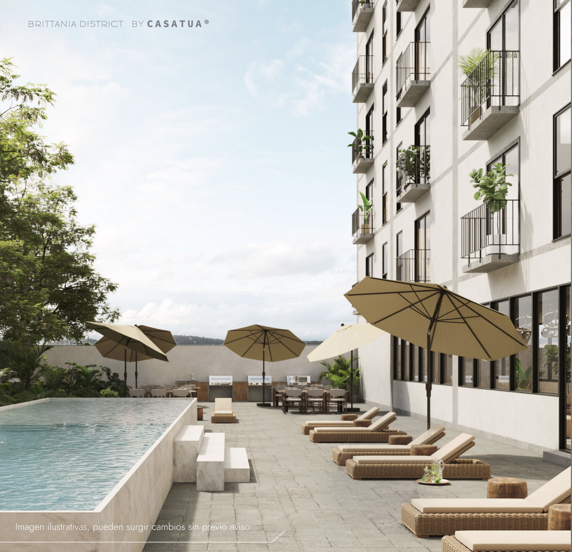 Amenidades: Alberca, Gimnasio, Zona coworking, Terrazas, Pet shower, Ciclopuertos, Vigilancia, Caseta de acceso, Lavandería, Asadores.