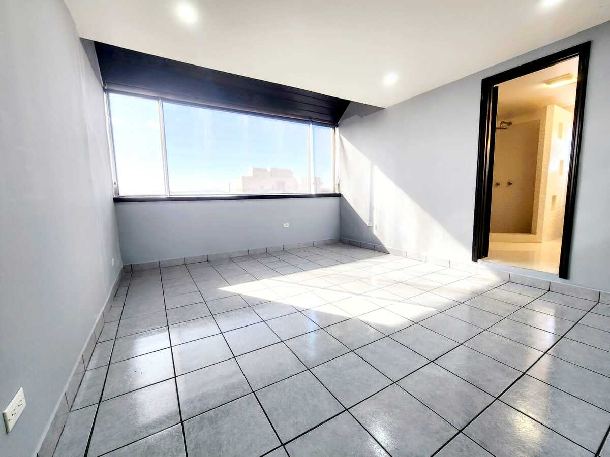 Departamento en renta ubicado en el cuarto piso de un edificio con solo 16 unidades, lo que brinda mayor tranquilidad y privacidad. Destaca por su excelente vista y la abundante luz natural que ilumina cada espacio. Cuenta con cocina integral equipada con cubierta de granito, estufa y refrigerador. Dispone de dos recámaras con persianas instaladas, dos baños completos y un lugar de estacionamiento techado con acceso mediante portón eléctrico. El edificio cuenta con cisterna y sistema de bomba hidroneumática para garantizar el suministro de agua. La renta incluye la cuota de mantenimiento. Se encuentra en una zona muy bien ubicada, cercana a escuelas, parques y tiendas de autoservicio. Es importante considerar que el acceso es únicamente por escaleras, ya que el edificio no cuenta con elevador.