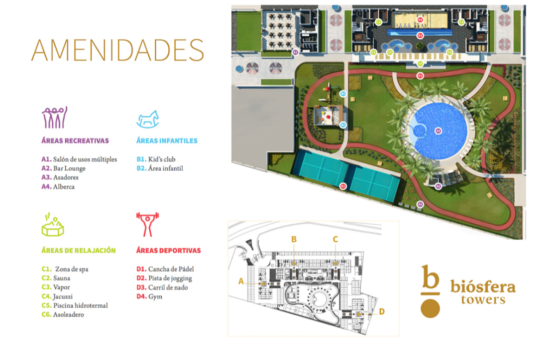 Alberca, salón de eventos, cancha de padel tennis, spa.