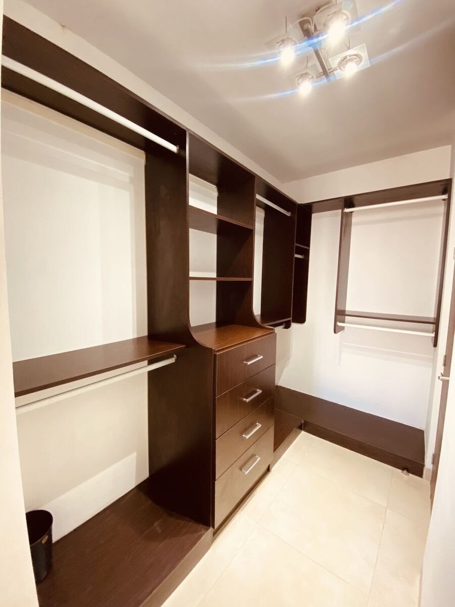 Cortinas tipo black out, aires acondicionados, closets de lujo, espejo en el baño.
