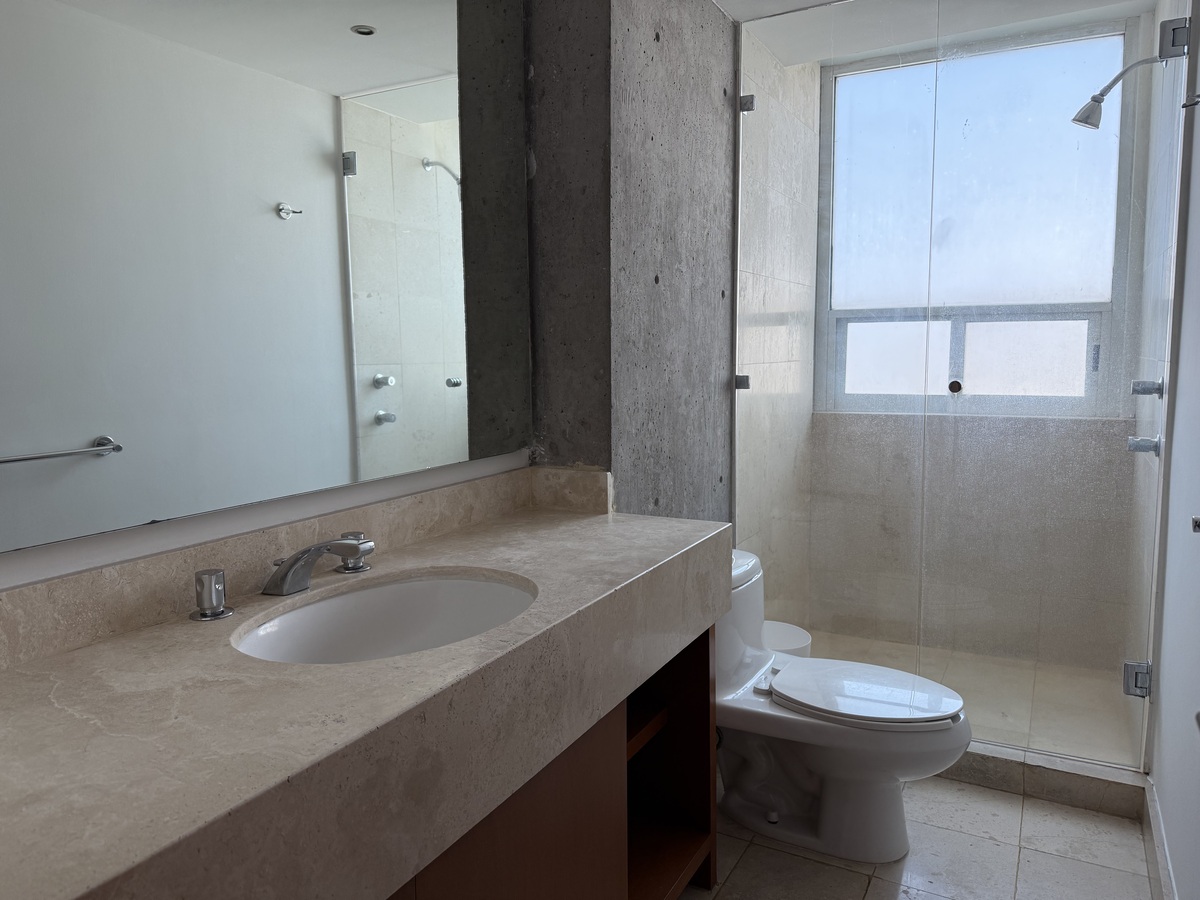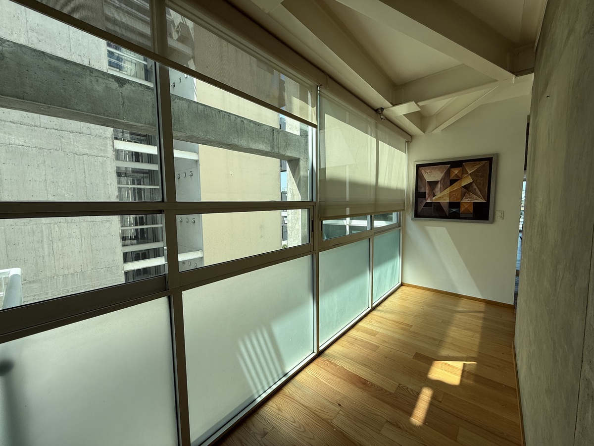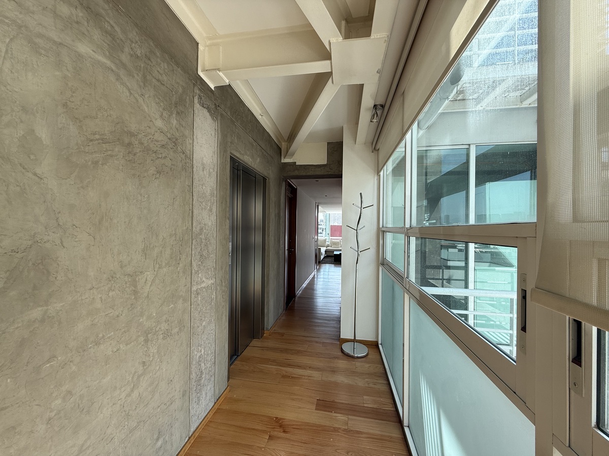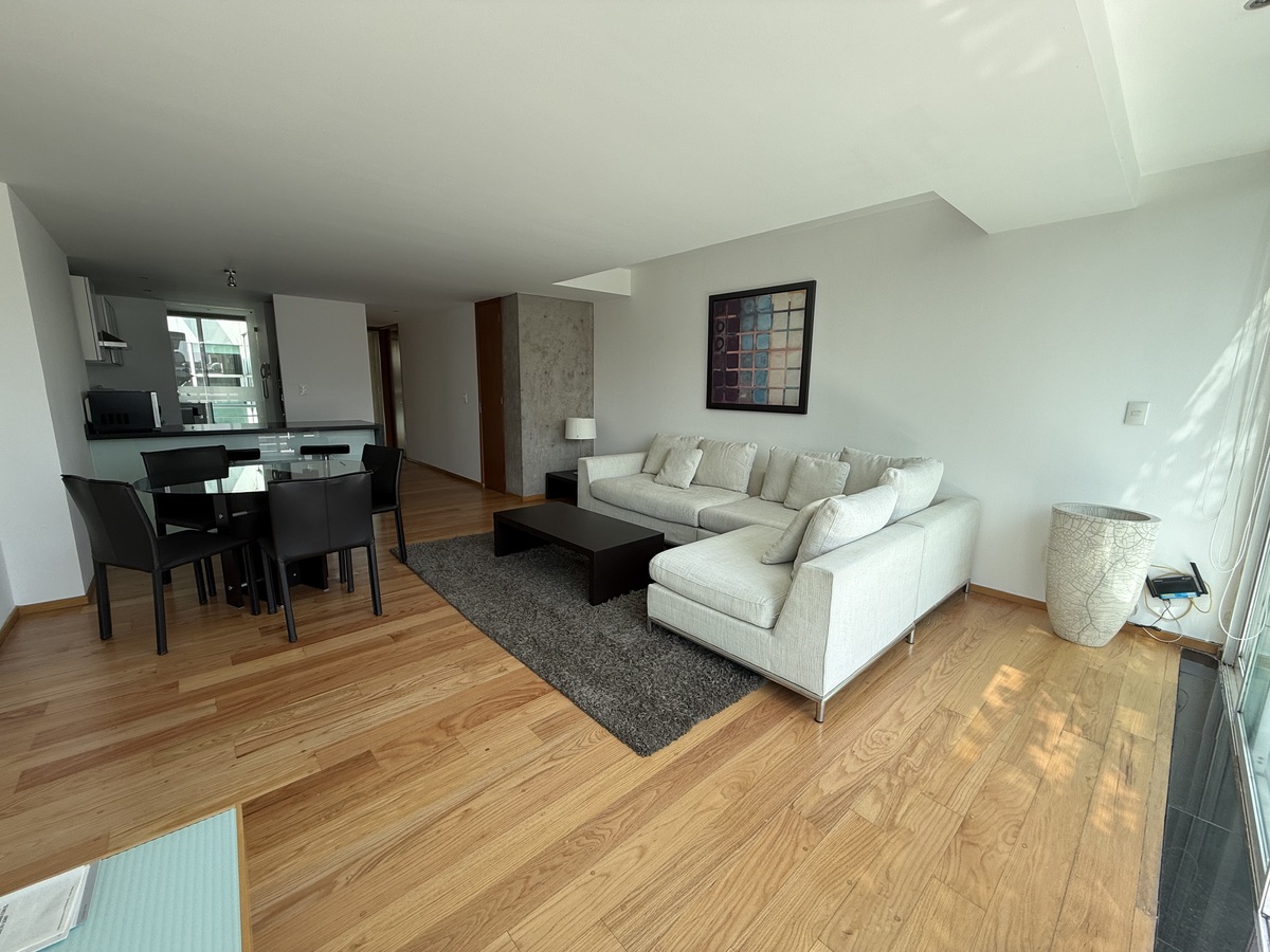El elevador llega directamente al departamento, este tiene dos recamaras con baños completos, cocina abierta que da a la sala y comedor. La sala y la recamara principal tienen un balconcito super agradable y con unas vistas a la ciudad lindisimas. El departamento es super iluminado.