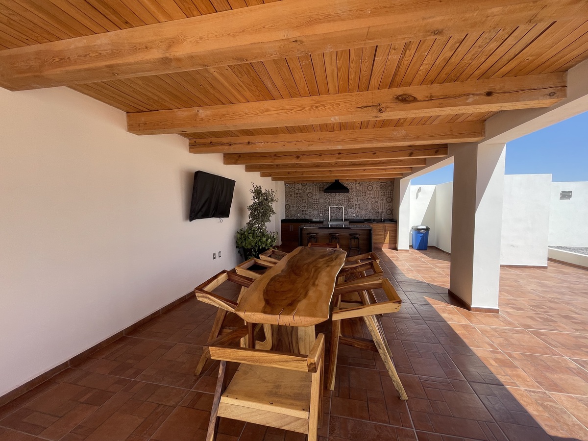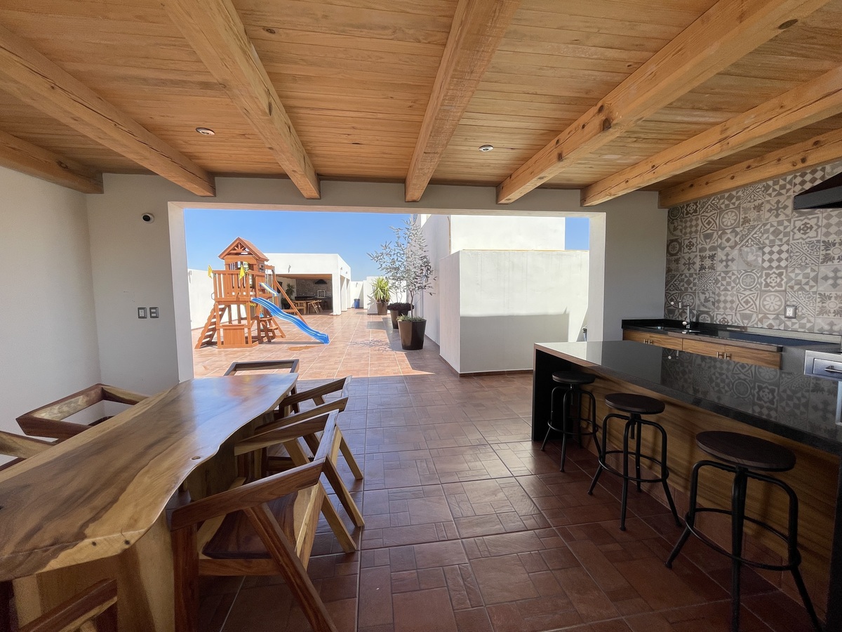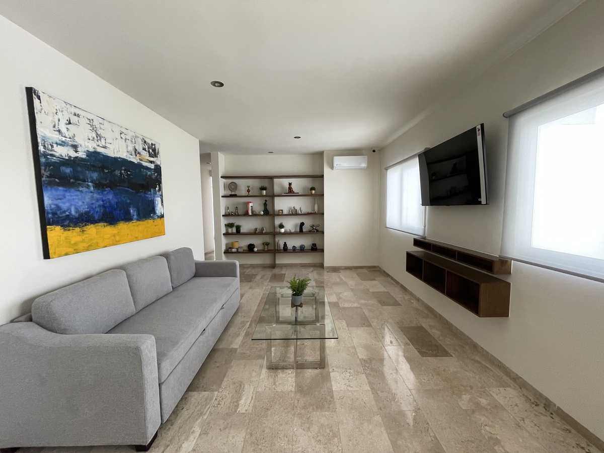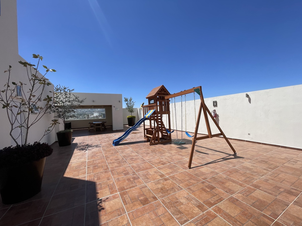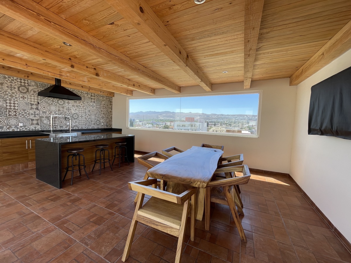 Departamento Loft amueblado, en zona muy céntrica, cerca de las principales arterias viales de la ciudad, sala, comedor, cocina a espacio abierto, medio baño de visitas ,área de lavado, 1 recámara con vestidor, baño balcón, estacionamiento 2 autos. edificio con seguridad 24 hrs, control de acceso facial y huella, elevador, amenidades, gym, salón de usos múltiples con villar, alberca , fogateros, área de juegos infantiles, terraza, área grill, petanca, salón de juegos,