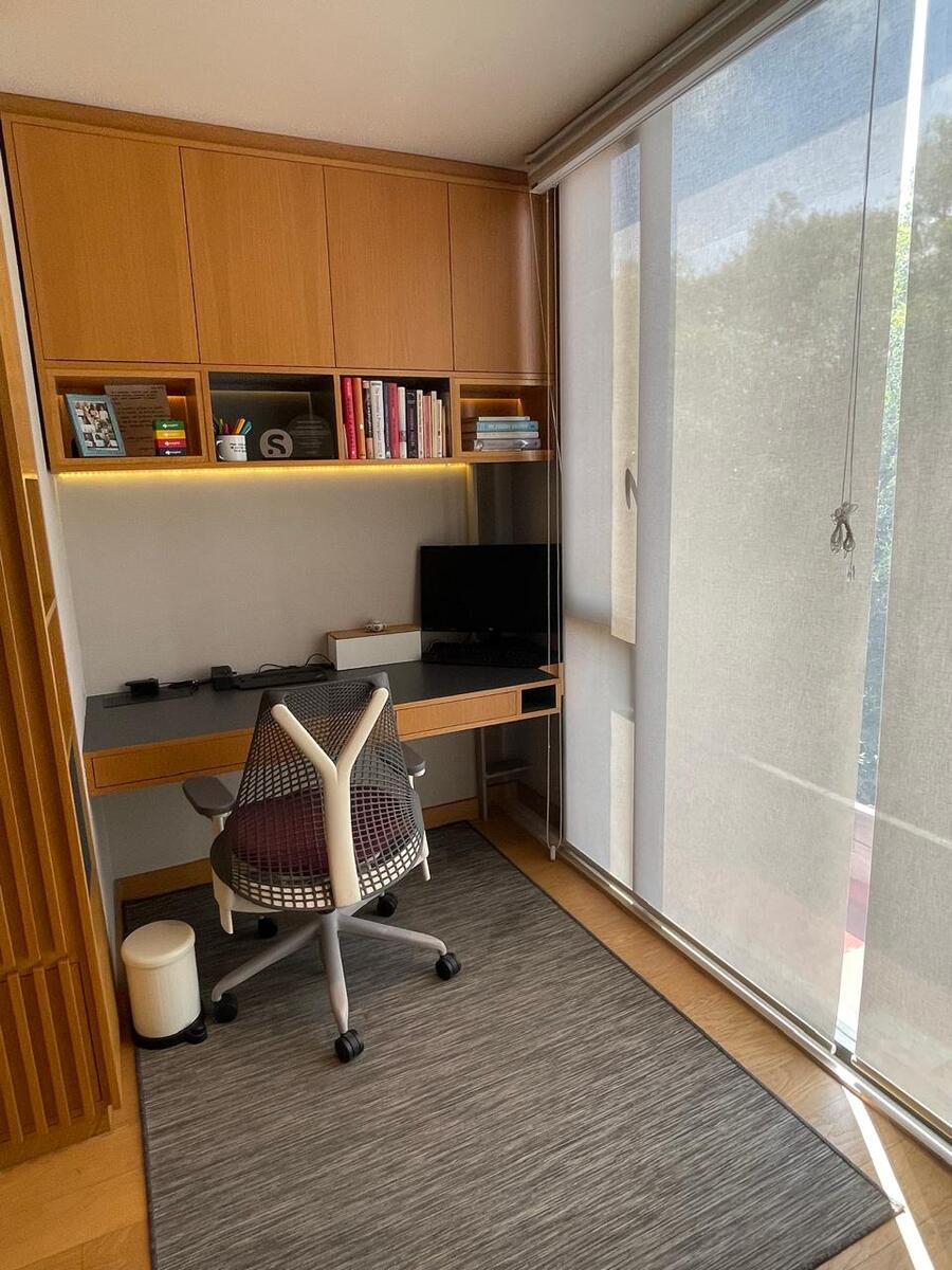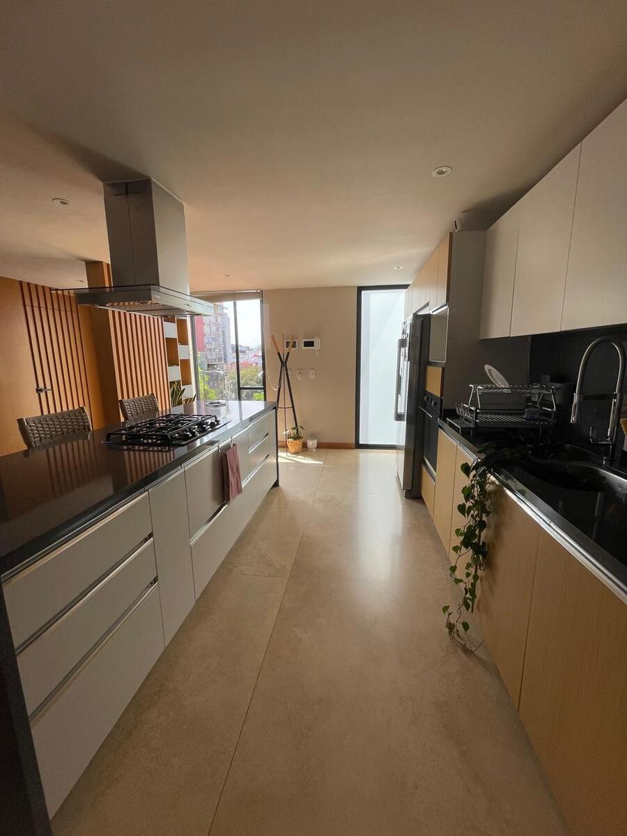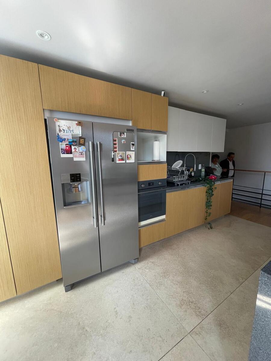 En el nivel superior encontrarás una amplia estancia con excelente iluminación natural, cocina abierta totalmente equipada con refrigerador, horno, microondas, parrilla, campana y barra con tres bancos. Además, cuenta con una terraza con asador, bar con cava, barra y refrigerador para vinos, ideal para recibir invitados.