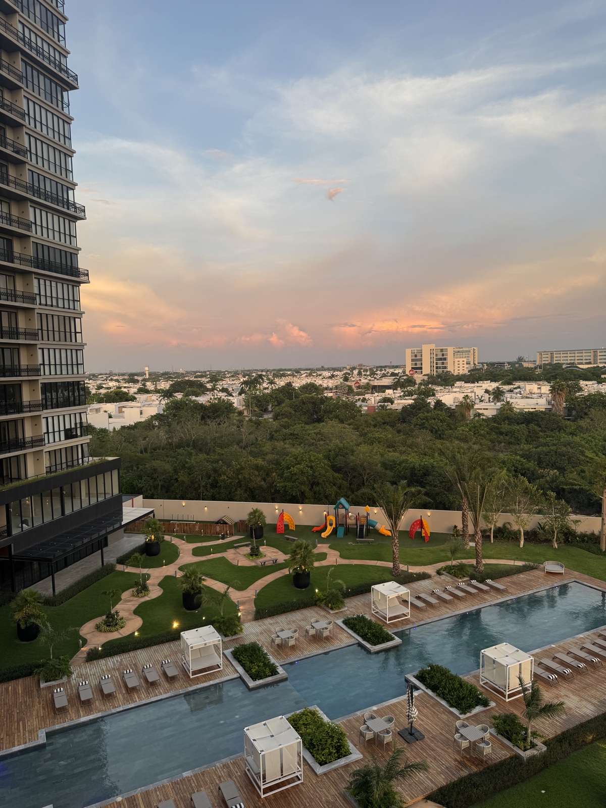 - Cine, alberca, cabañas y camastros, biblioteca y kids park.