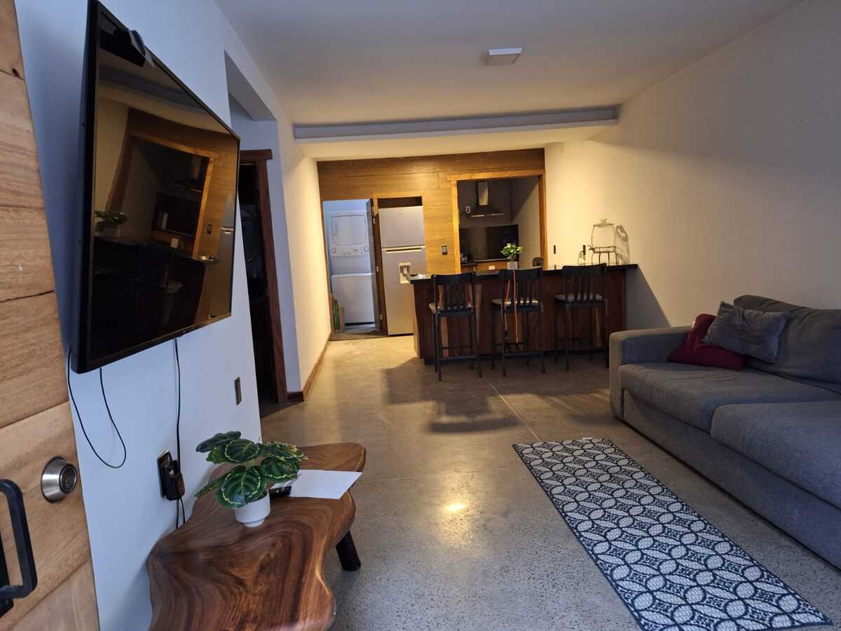 Este acogedor departamento en ubicado en la planta baja está totalmente amueblado y listo para habitar.