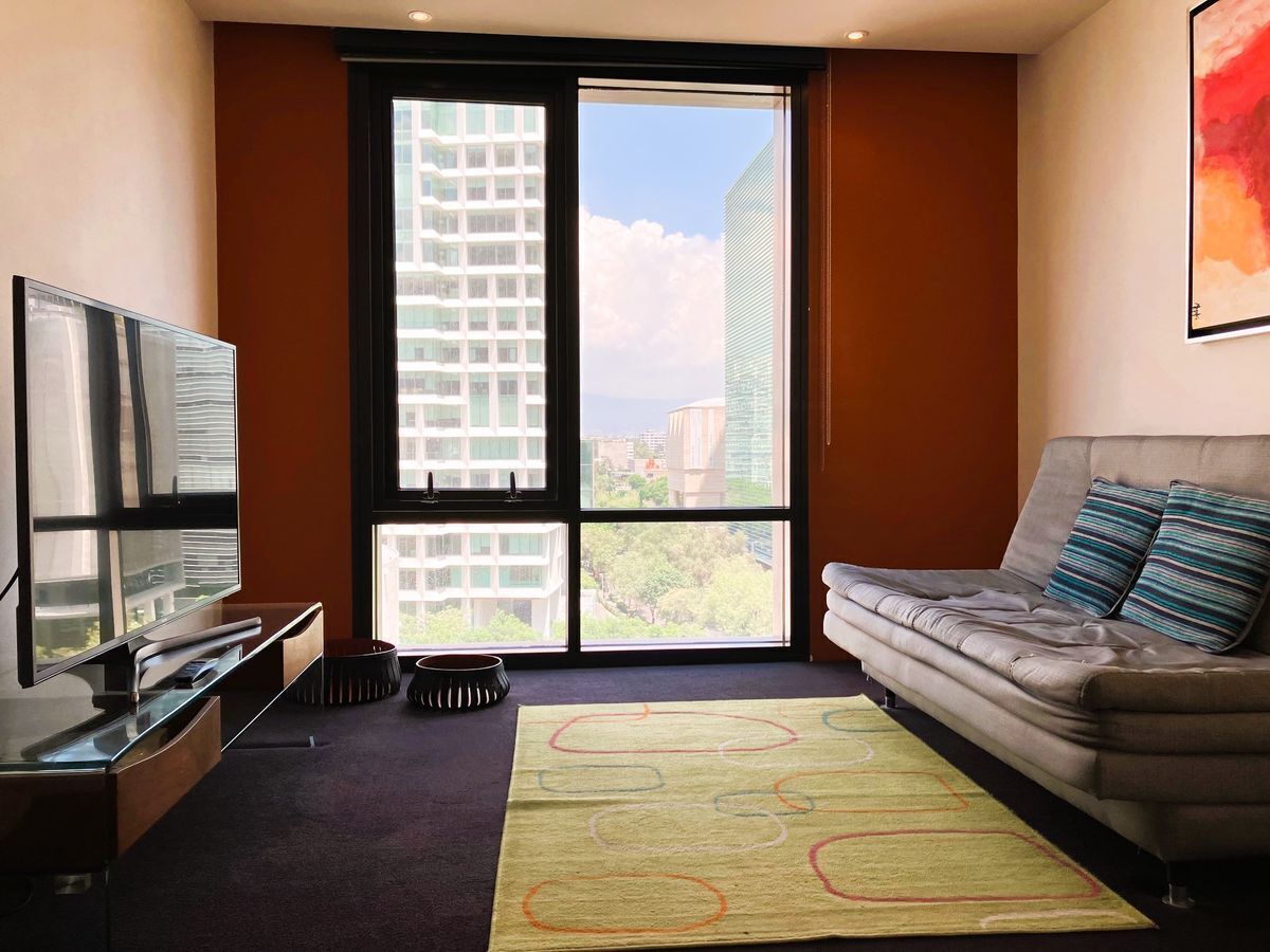 Renta de departamento amueblado en la torre Monarca (torre con el menor número de deptos.) en MIYANA. 105 m2. Amueblado y equipado. La segunda habitación está habilitada como cuarto de t.v. pero se puede acondicionar como recámara. Con vista hacia Antara Polanco. En piso bajo. Magníficas amenidades: Albercas climatizadas, área de asoleadero, gimnasio, ludoteca, salones de fiestas, salón de spinning. Acceso directo al Centro Comercial (Soriana Hipermercado 24/7, Home Depot, Starbucks's, entre otros muchos comercios y gran variedad de restaurantes para todos los presupuestos). Dos lugares de estacionamiento fijos y techados que NO se estorban entre sí. El mntto mensual está incluido en la renta. Se acpetan mascotas pero en el caso de traerlas se solcitan DOS meses de Depósito. Aproveche! Conózcalo!