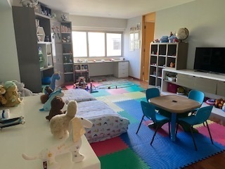 Gran estancia sala-comedor, con gran librero empotrado que divide esta área del "Familyroom" .