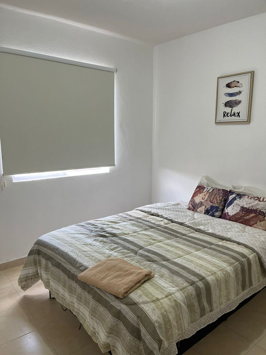 Tiene: persianas, mosquiteros, sala, tv y mesa de centro