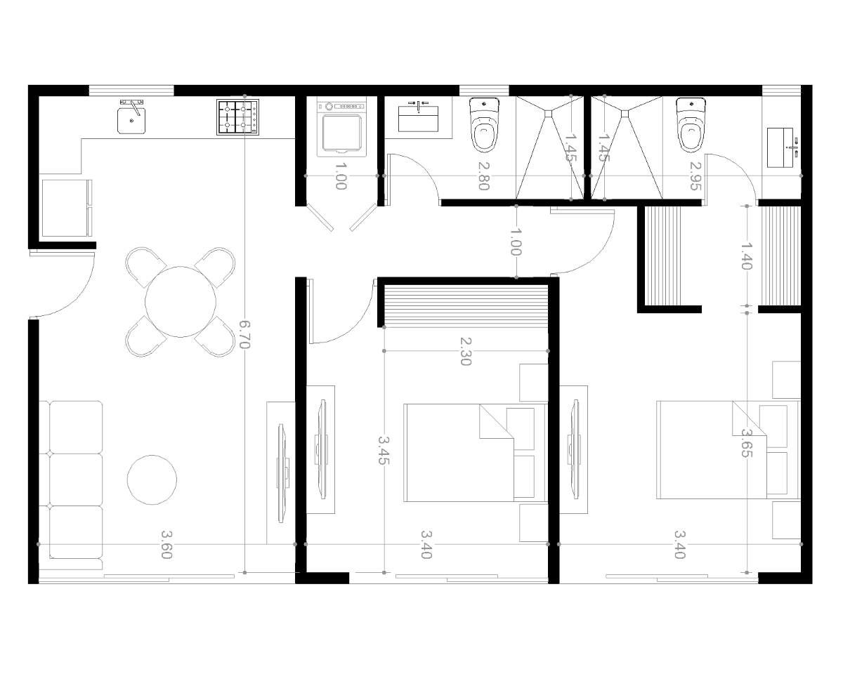 - Sala Comedor corridos mesa para 6 personas.