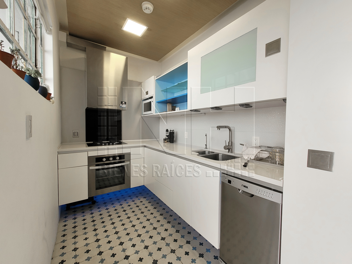Distribuido en 100 metros cuadrados, En la sala podrás disfrutar de un Teatro en Casa con audio en multizonas con diseño de luz indirectas en estancia y comedor, cocina integral moderna totalmente equipada con diseño especial con herrajes Austriacos y una cubierta de cuarzo Silestone, que te invita a preparar los mejores platillos, el departamento tiene un Sistema Filtración (CA) y Purificación (UV) de agua.