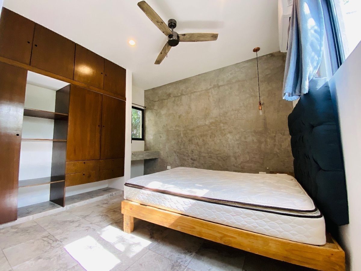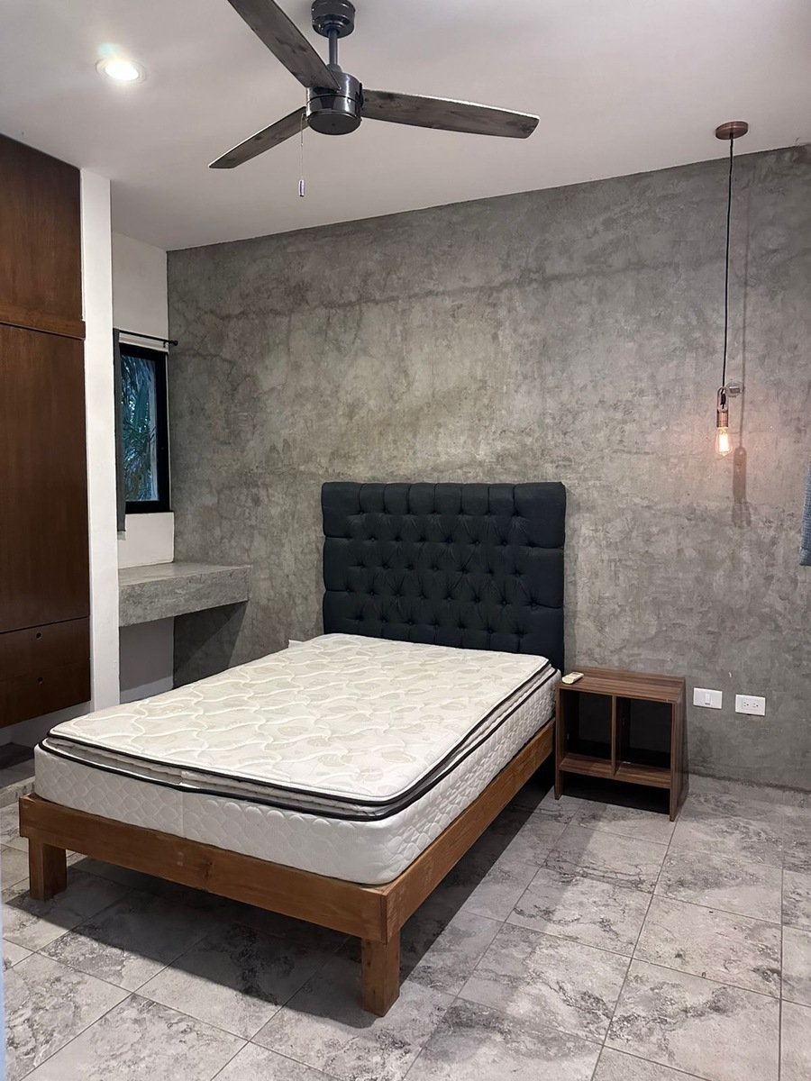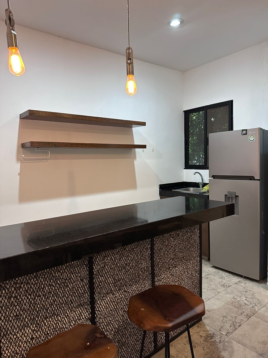 Este departamento tiene estética con vibras de TULUM y la tranquilidad de una muy moderna Mérida. Este espacio luminoso, vive en la segunda planta, donde la brisa circula para refrescar al más acalorado en Mérida. La colonia en donde se encuentra: Colonia Maya, al noroeste de la ciudad.