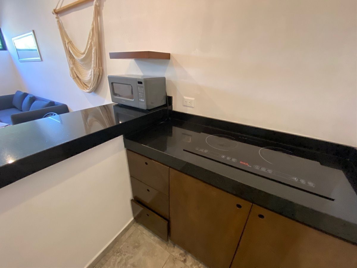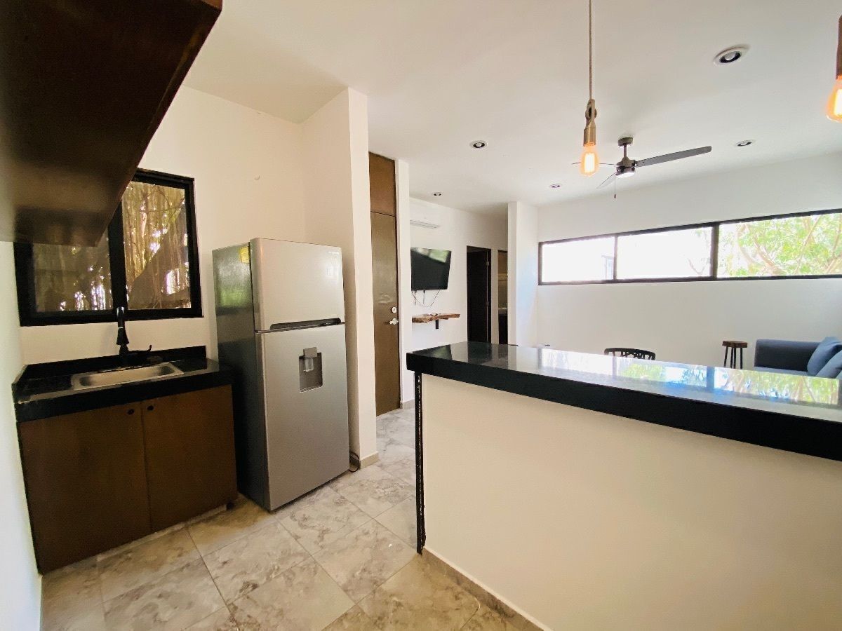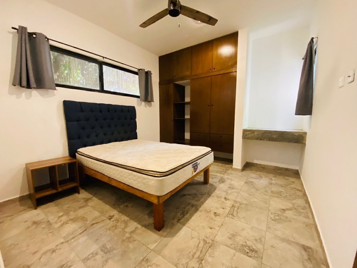 Este departamento tiene estética con vibras de TULUM y la tranquilidad de una muy moderna Mérida. Este espacio luminoso, vive en la segunda planta, donde la brisa circula para refrescar al más acalorado en Mérida. La colonia en donde se encuentra: Colonia Maya, al noroeste de la ciudad.