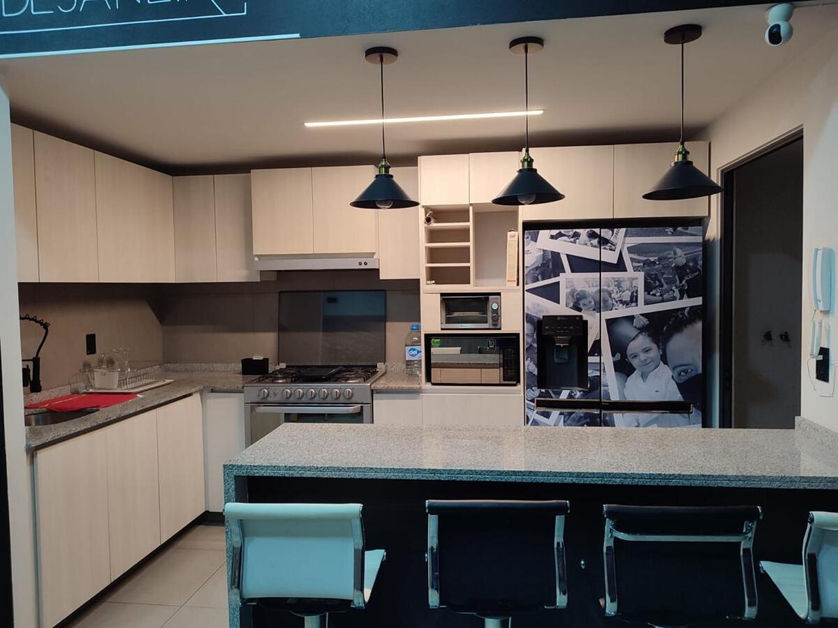 cuenta cocina equipada, refrigerador, horno de microondas, lavadora.