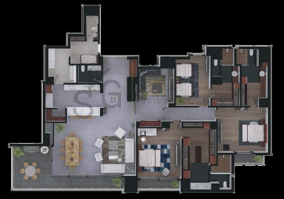 Se Venden Departamentos Nuevos en Bosque Real en nuevo desarrollo Roma Bosque Real, edificio para estrenar con 30 departamentos de 371.34 m2 y 418.36 m2 de superficie totalmente terminados, todos con enormes terrazas para gozar de áreas de asador o chimenea ,comedor y sala adicionales con canceles totalmente abatibles entre ellas. 3 recamaras con Walk-in closet y baño, medio baño para visitas, sala, comedor, cocina, family , área de lavado, cuarto de servicio con baño, 4 lugares de estacionamiento y bodega. Se entrega en Abril de 2022 con todos los electrodomésticos de la marca Miele , toda la carpintería terminada y listos para mudarse.