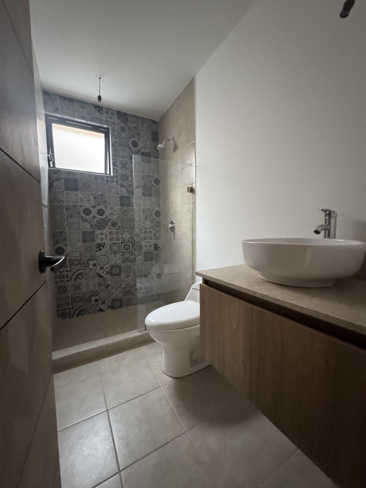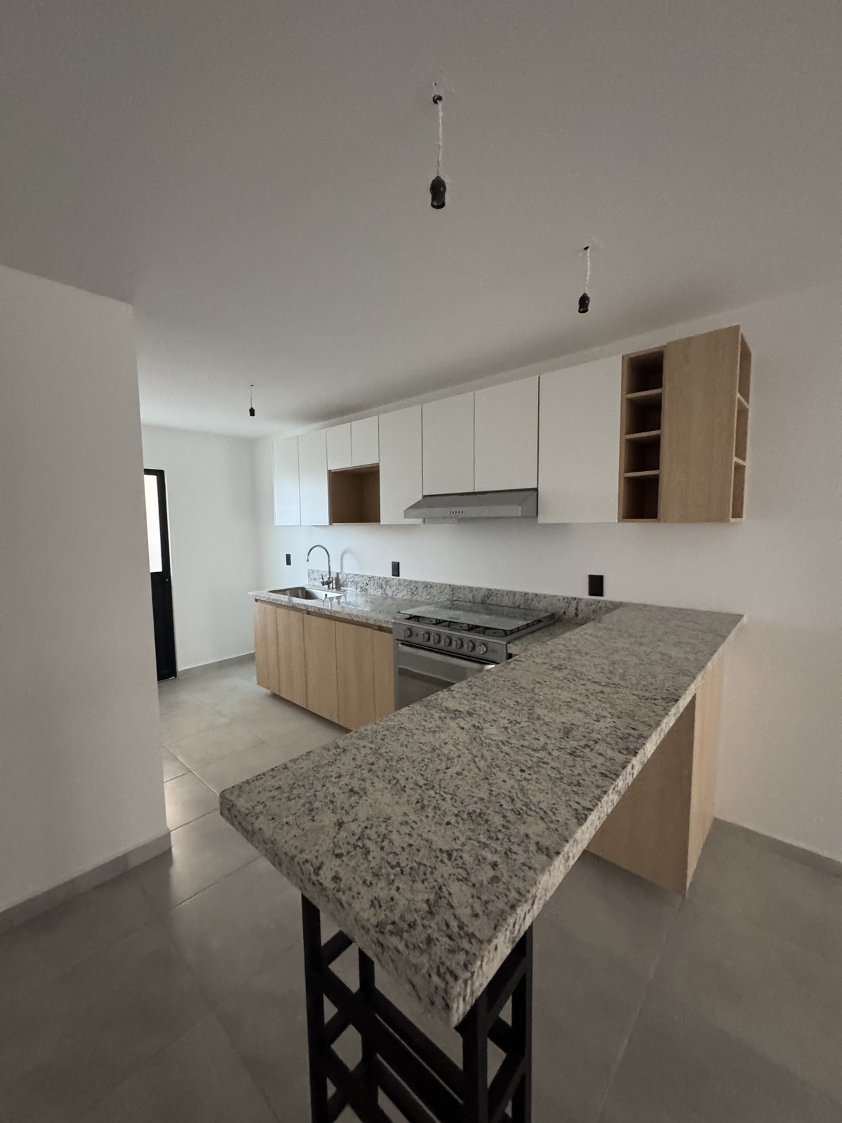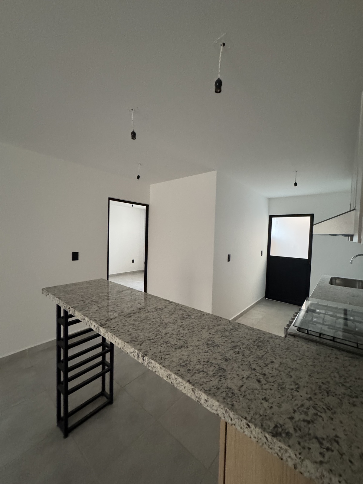 El departamento esta completamente equipado con cocina integral con barra de granito, closet, vestidor, baño completo con cancel y mueble de baño.