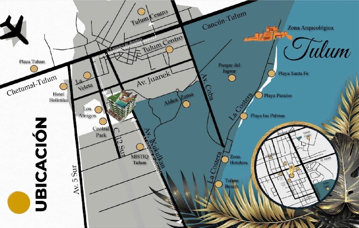 Excelente ubicación a 7 minutos de la playa, a 10 minutos de las mágicas ruinas de Tulum, así como de restaurantes, bares y tiendas comerciales, todo lo que necesitas para tener la mejor inversión de la Riviera Maya, entrega en Julio del 2025.