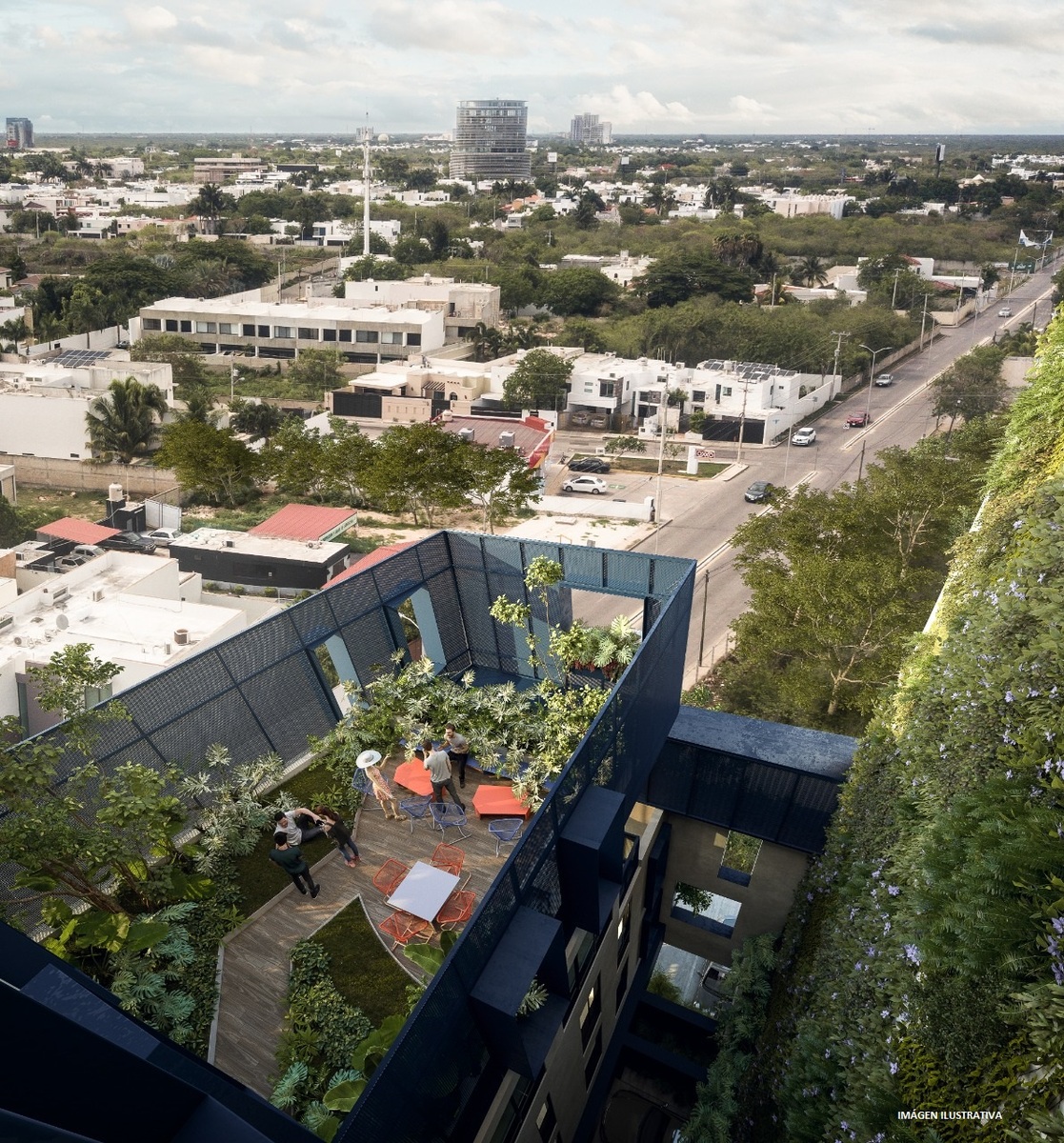 Es el único desarrollo con un parque vivo, situado en el cuarto nivel, ofreciendo una vista increíble de la ciudad.
