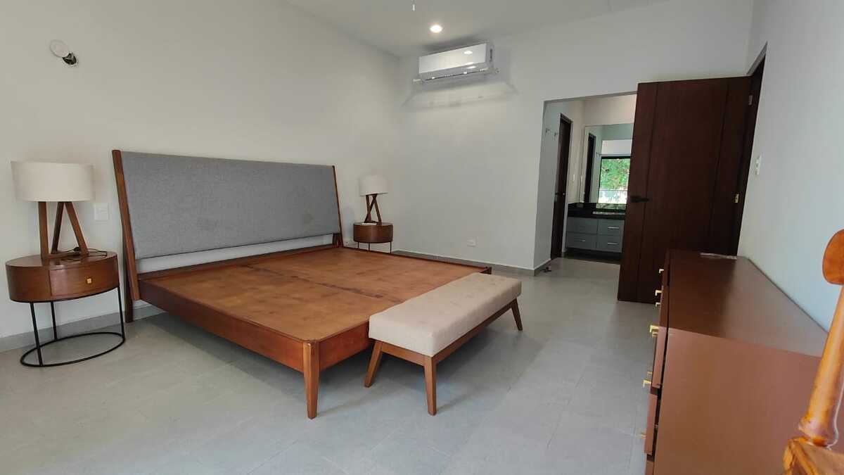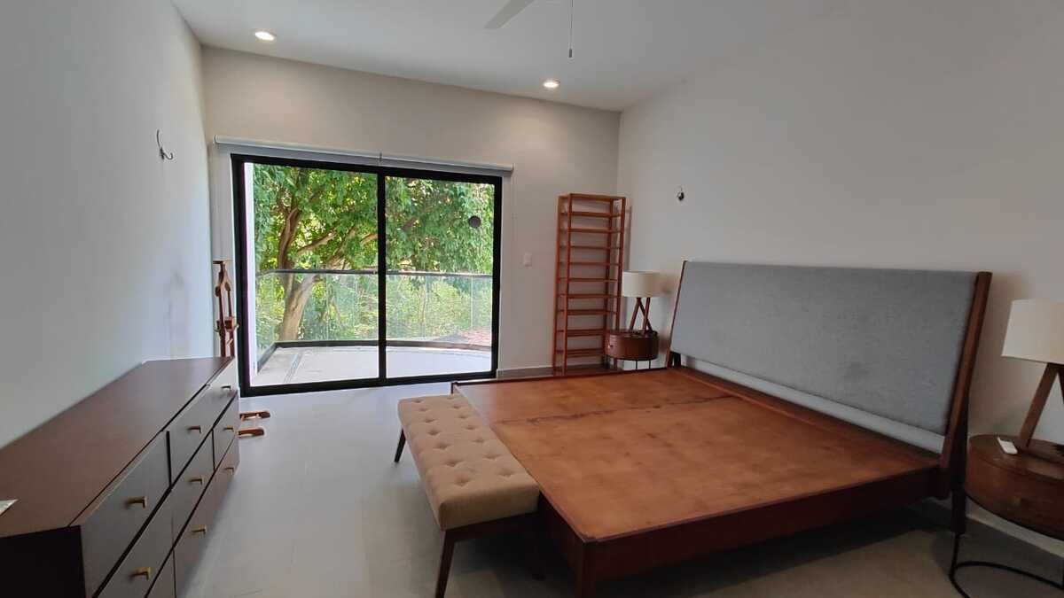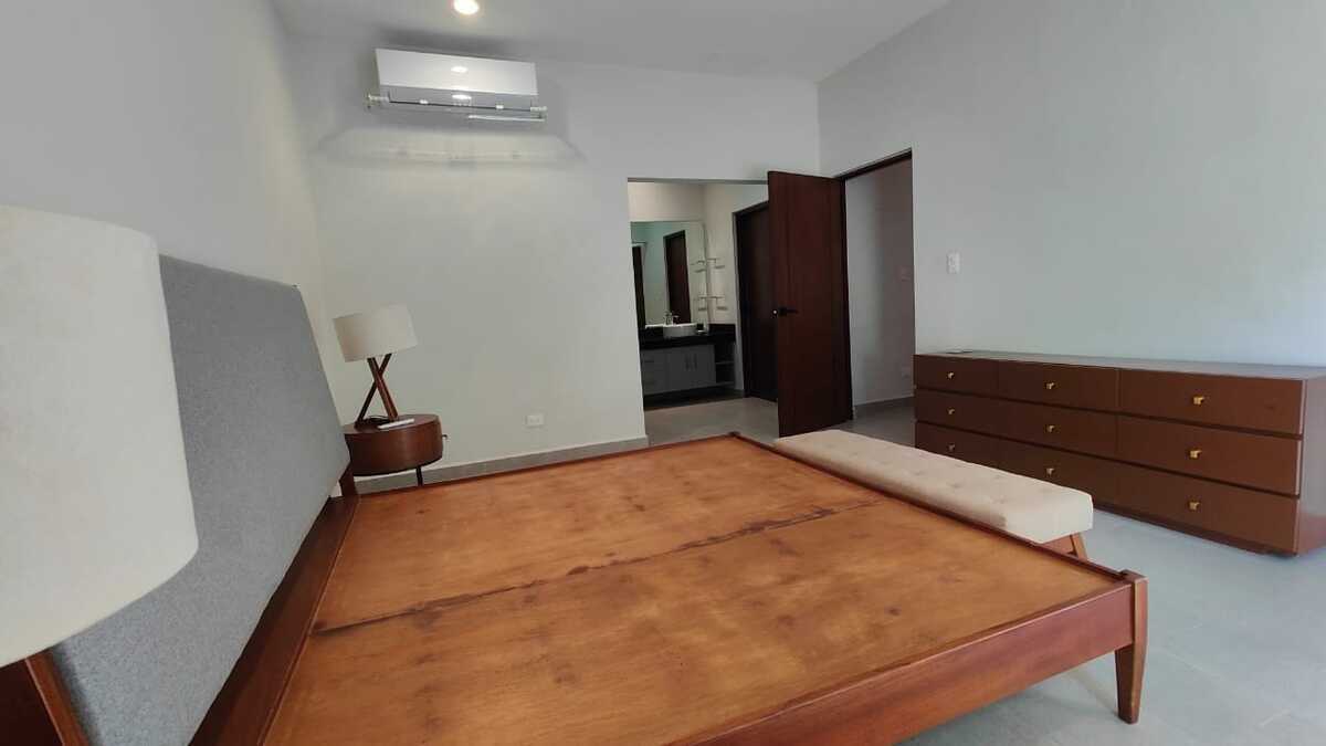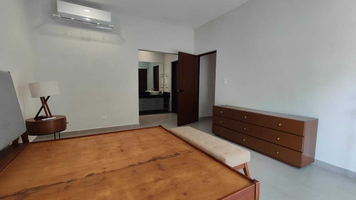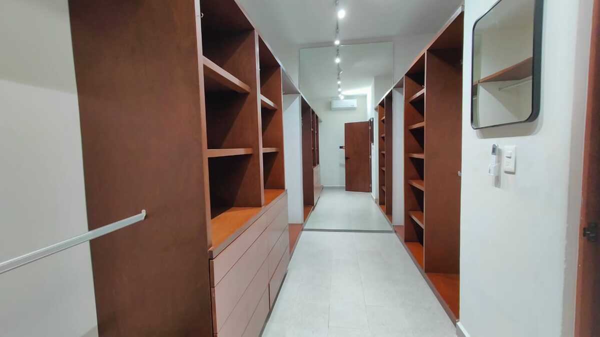 El departamento tiene 3 recámaras con clósets, cuenta con 3 baños completos y un medio baño. Un estudio ofrece un espacio adicional para trabajar o estudiar desde casa.