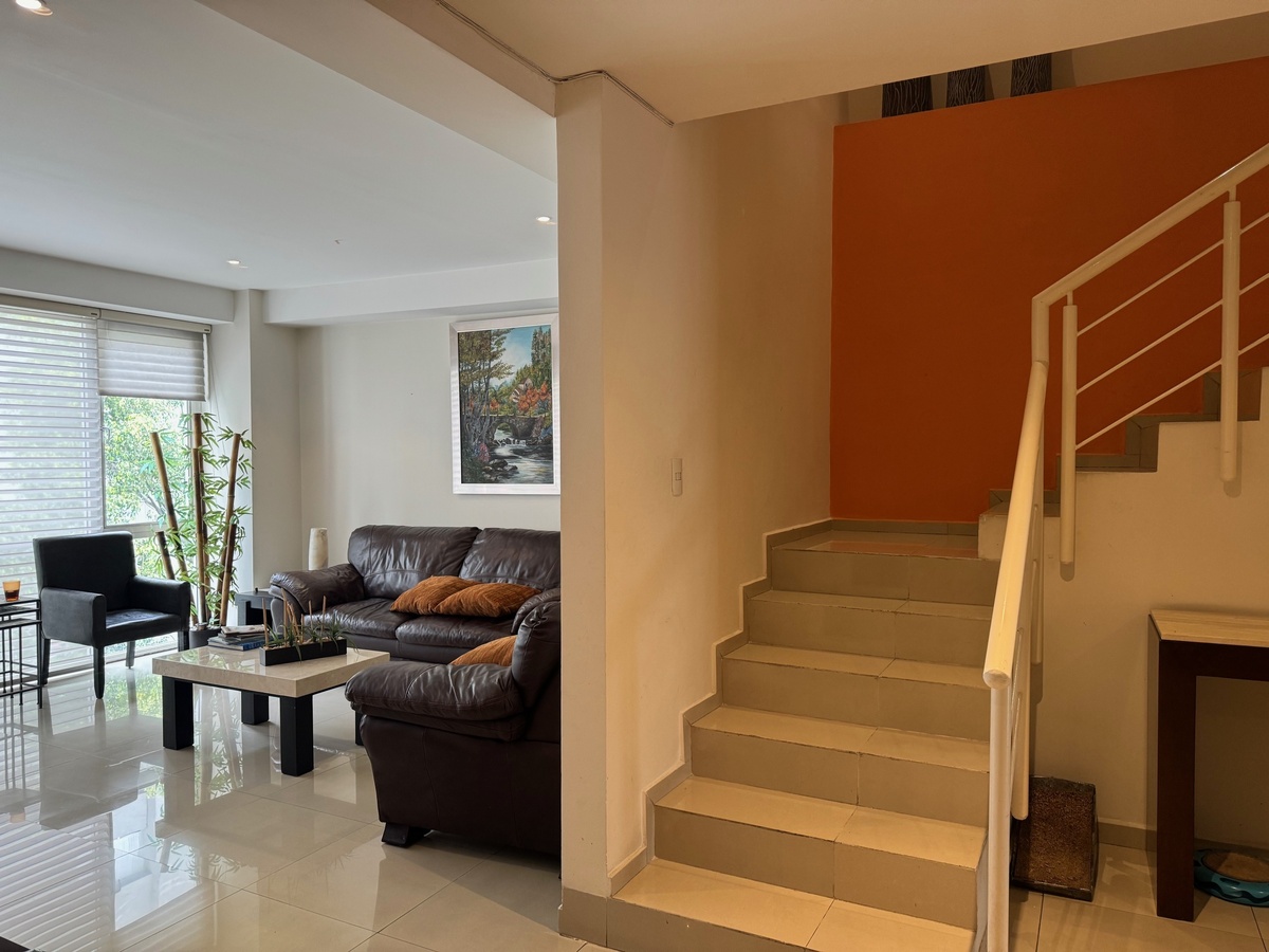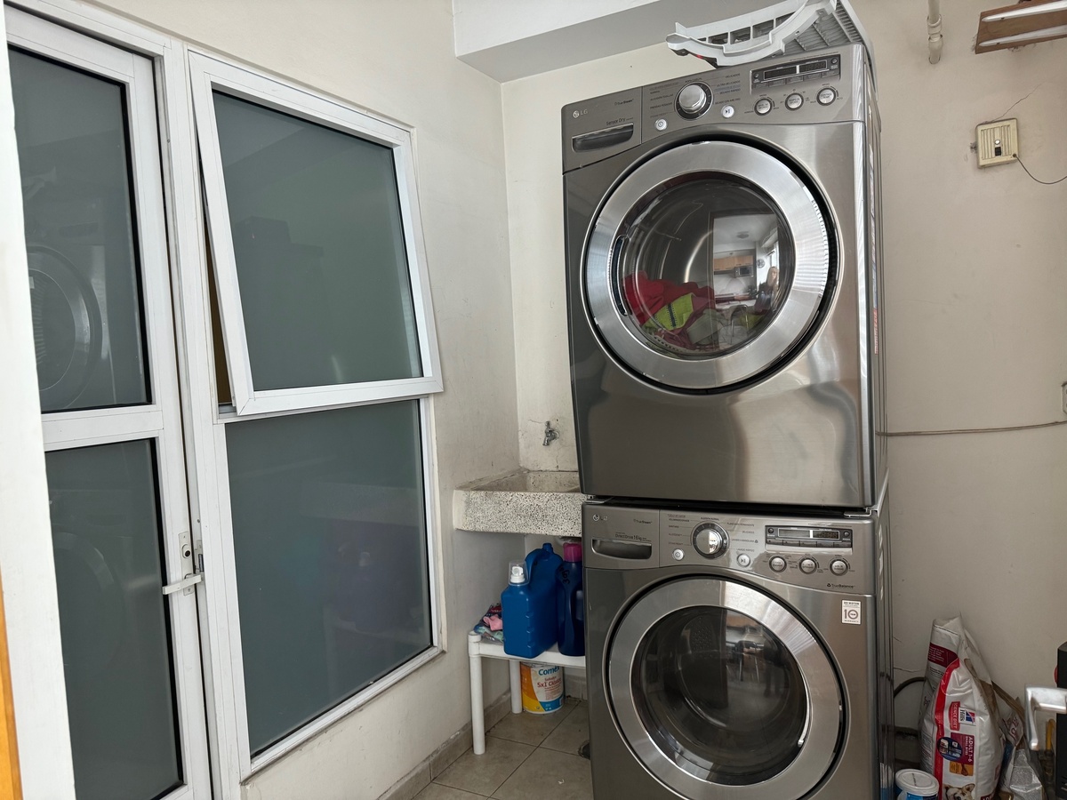 El departamento es de 2 pisos, exterior, en 2do piso con elevador, tiene en la planta baja la entrada principal, una sala muy amplia, comedor, cocina integral con espacio de antecomedor, lavandería y cuarto de servicio completo integrados, medio baño de visitas y entrada de servicio, en la planta alta hay una sala familiar para TV y estudio, 3 recámaras con baño cada una, la principal con muy buen vestidor.
