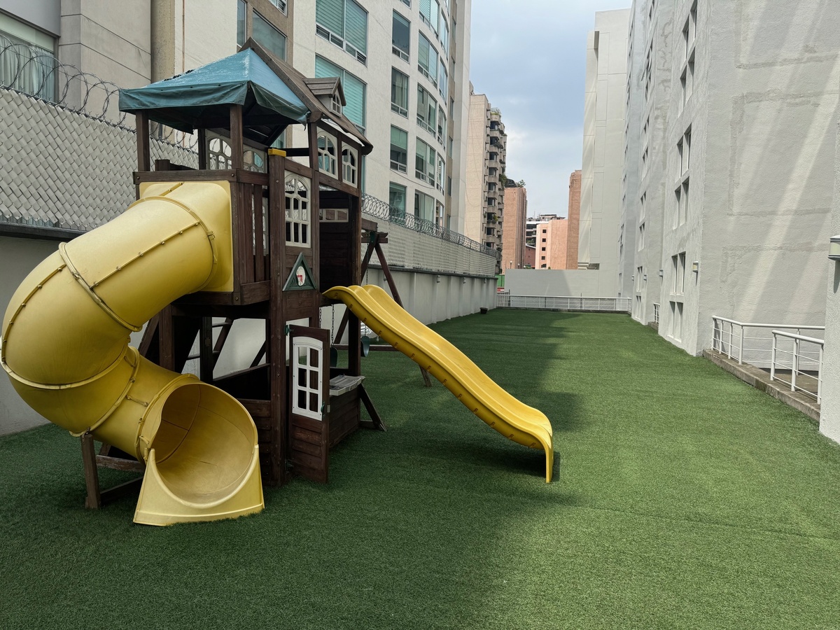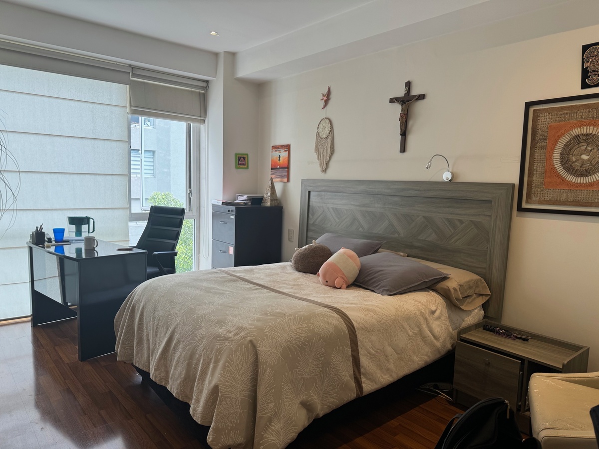 Excelente departamento super amplio, muy bien ubicado, a media cuadra de periférico y unos minutos de Av. Insurgentes, iluminado, soleado, en edificio de solo tres departamentos, con estricta vigilancia, tiene además gimnasio, salón de eventos y jardín con juegos infantiles.
