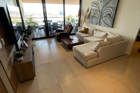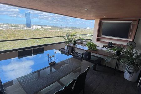 Sala y comedor de corrido con amplio balcón y vista a las amenidades y a la ciudad