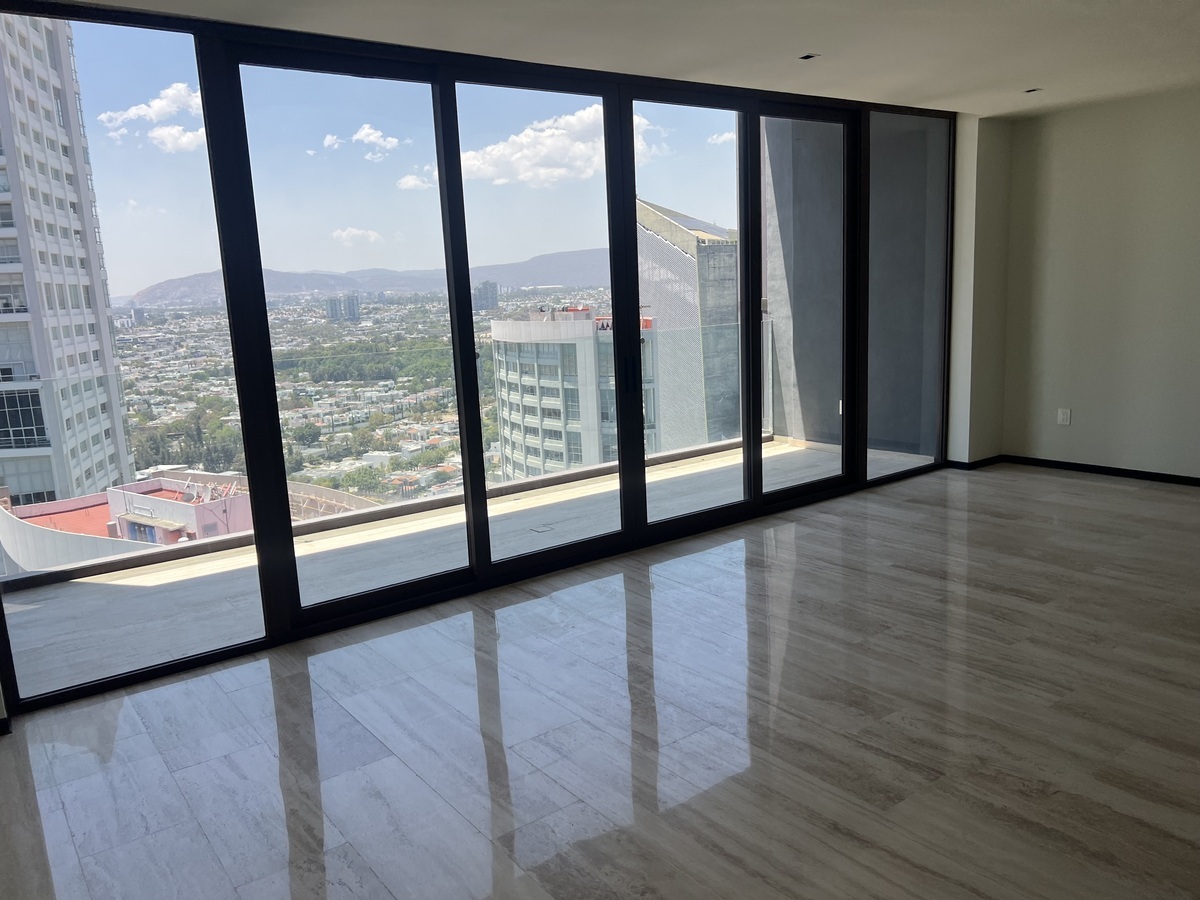 En el corazón de la zona financiera AAA de Guadalajara, este departamento de 170 m² en piso 26 ofrece vistas panorámicas al sur, distribución eficiente y acabados de alto nivel. Cuenta con 2 recámaras, 3 baños + medio baño, cocina integral, área de lavado, cuarto de servicio con baño y 2 estacionamientos. Edificio 2024, cuota de mantenimiento $4,000.