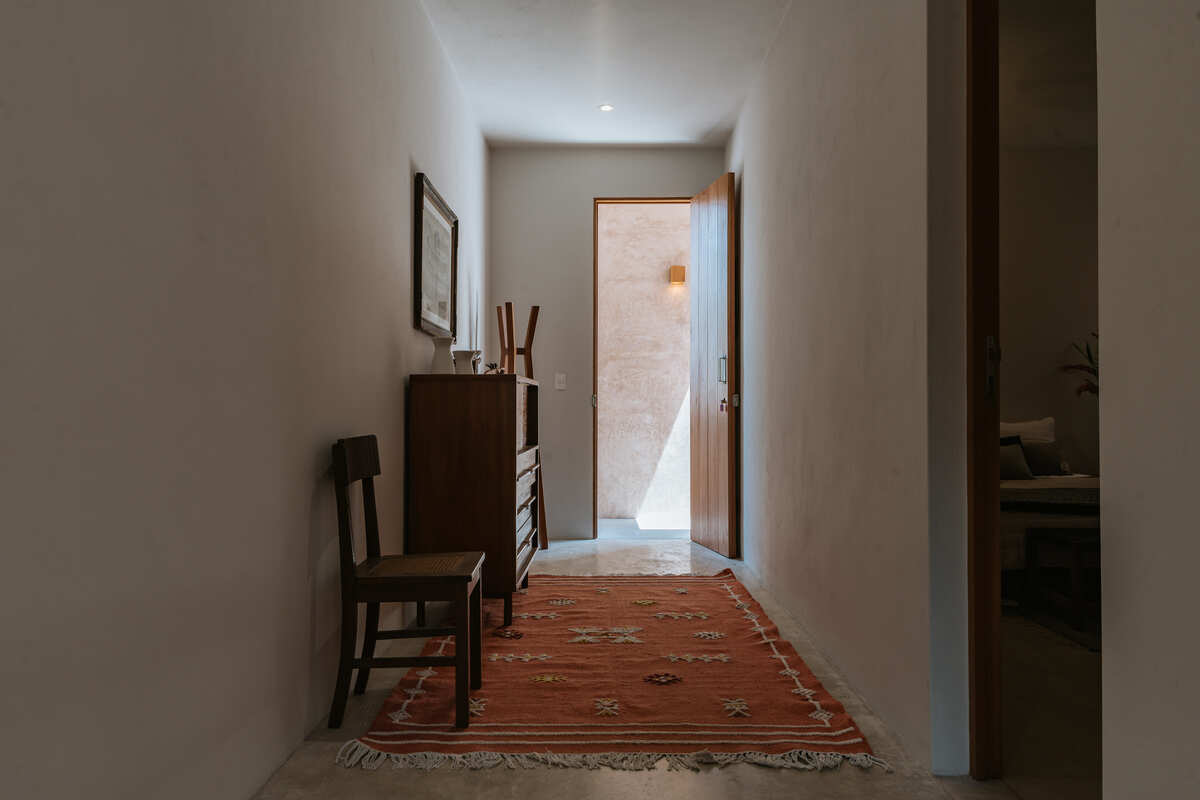 En el interior se encuentra un patio con piscina, árboles y circulaciones jardinadas que distribuyen a tres diferentes viviendas independientes.