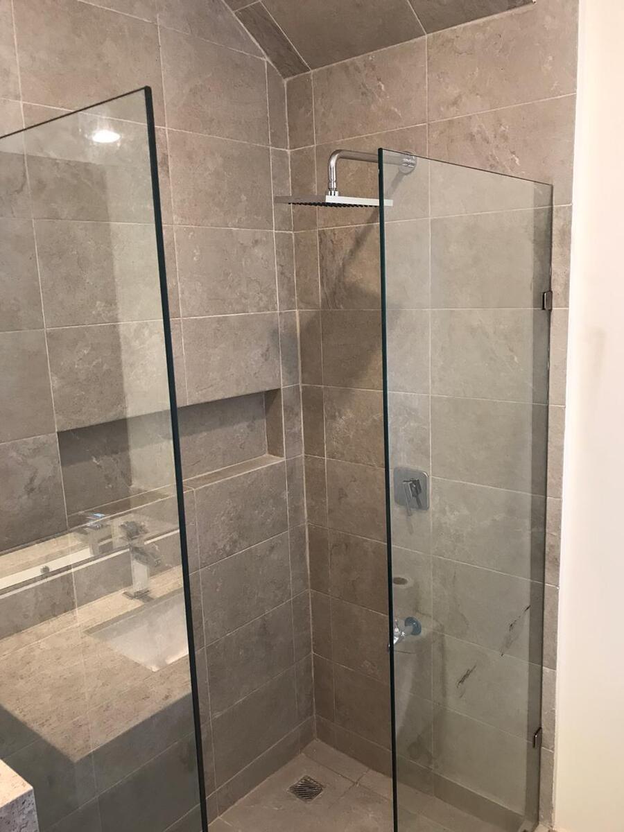 Recámara secundaria con baño completo que comparte o funciona como baño para el departamento (tiene 2 puertas una comunicada a la recámara y otra comunicada al departamento, área de sala comedor)