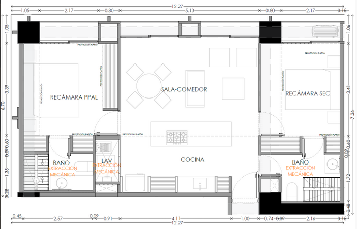 - Área de lavado (incluye boiler de paso y preparaciones para lavasecadora);