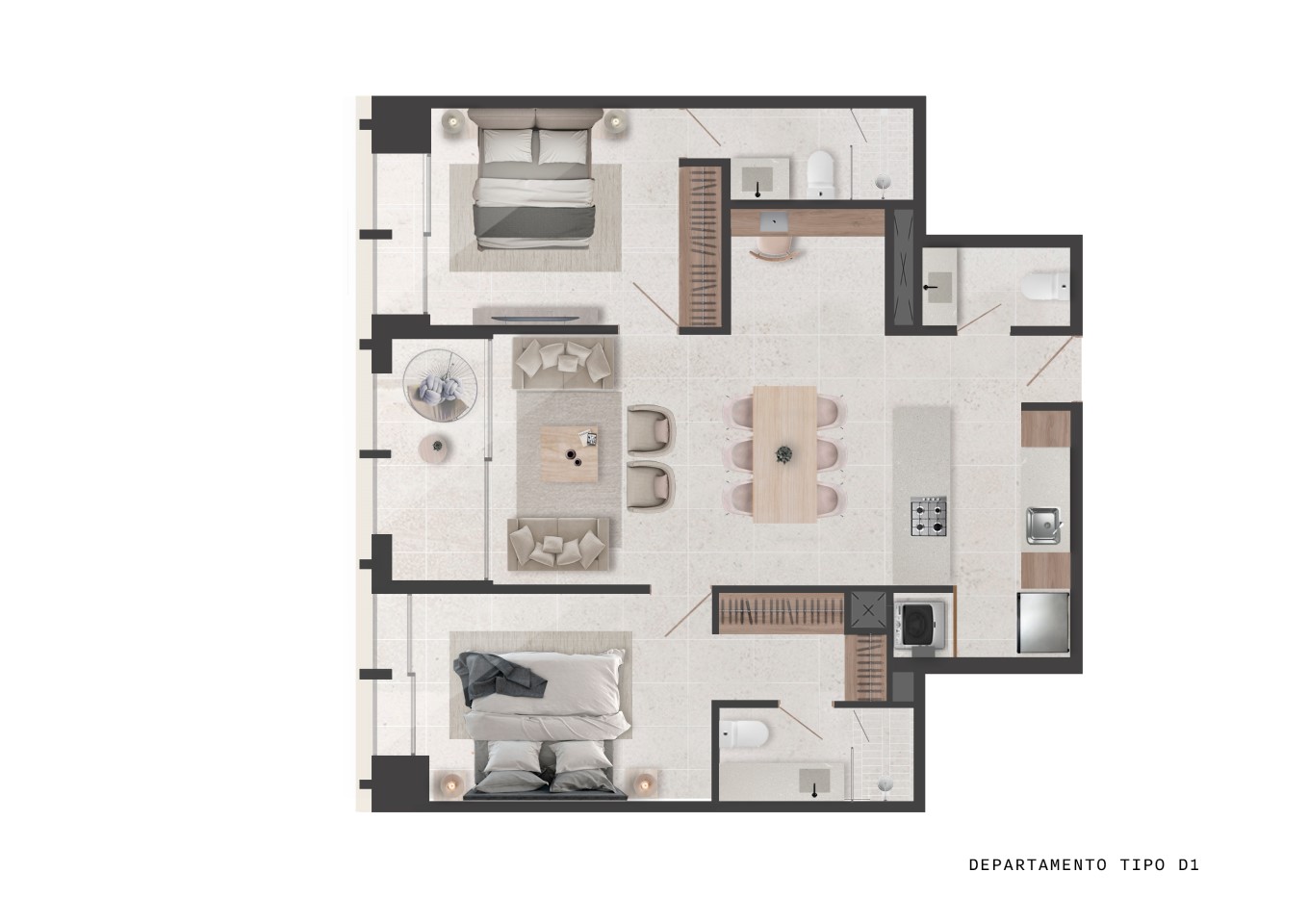 - Modelos de 1, 2 y 3 recámaras con clóset;
