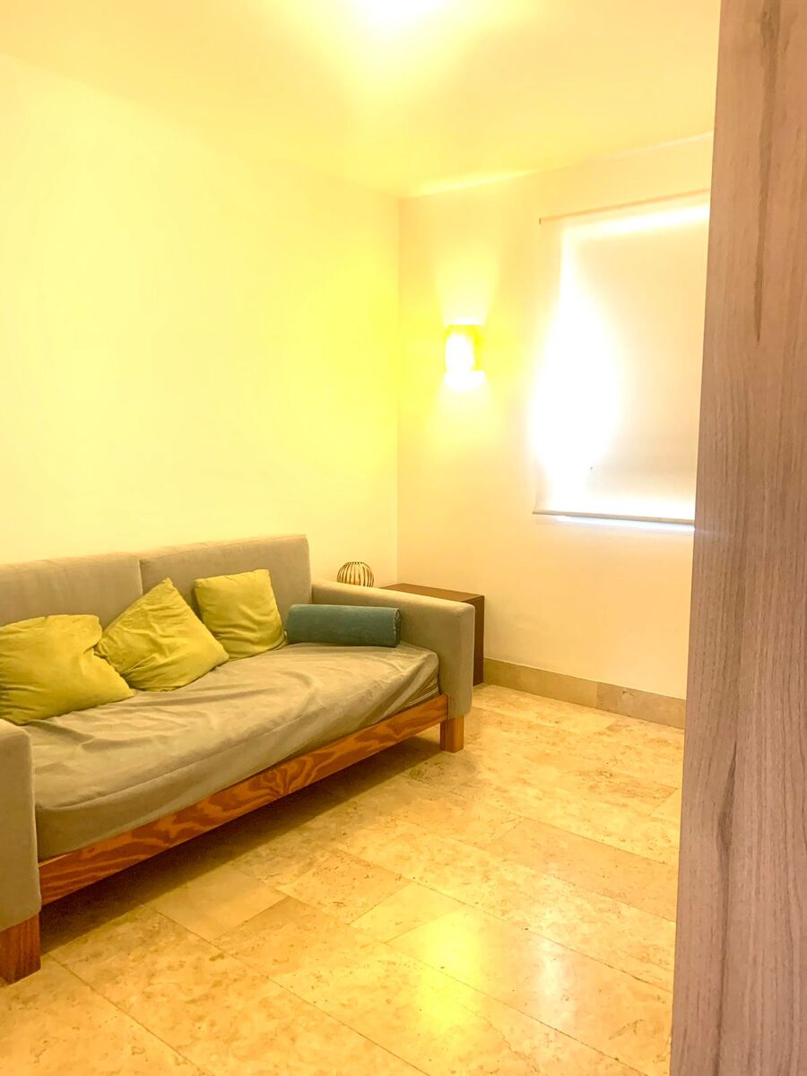 Área que puede funcionar de desayunador, terraza cerradas, oficina con puertas de cristal con vista al jardín.