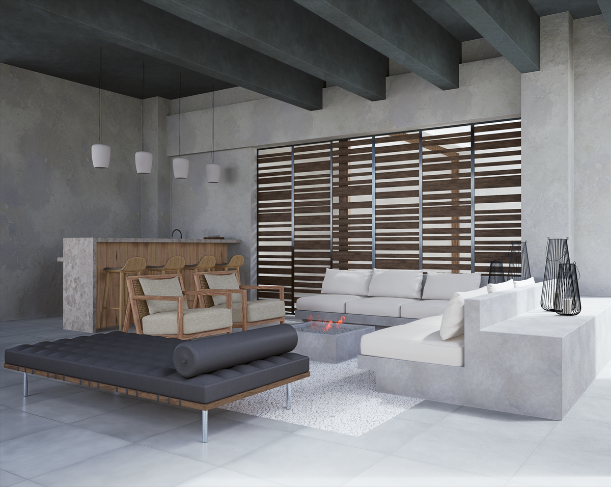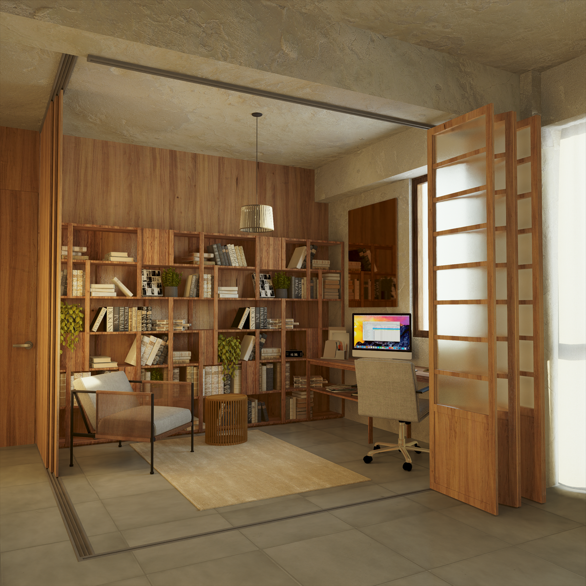 Amplia sala con ventanales de piso a techo, aérea de lavado con centro de lavado incluido, baño completo para uso del área social, amplio estudio frente al area de tv.