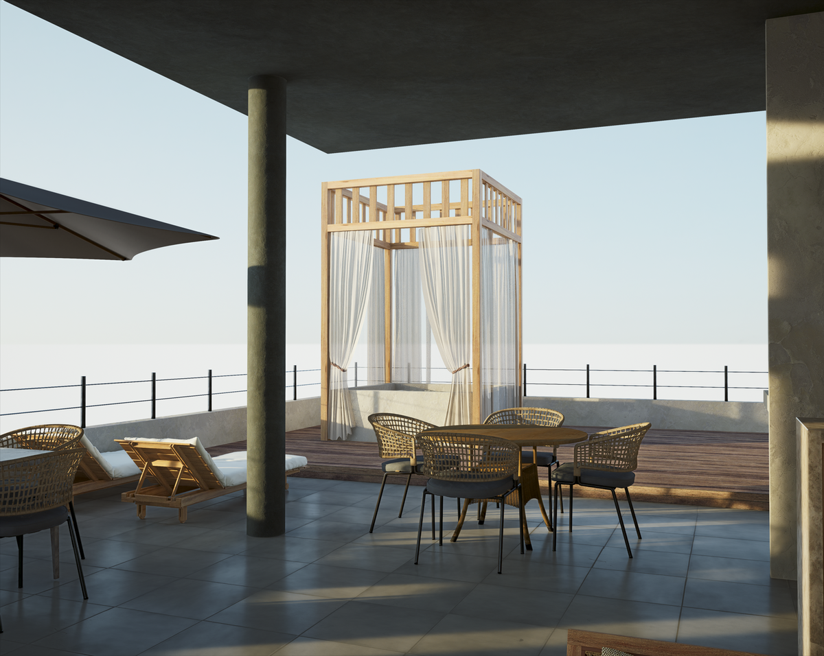 Exclusiva Torre con tan solo 20 departamentos, uso de tecnologías de generación de energía como paneles solares para costos menores de mantenimiento. Los departamentos fueron diseñados con efecto termosifón: Se permite la salida del aire caliente con unas aberturas en las partes altas de las viviendas y entra el aire frío por las partes bajas.