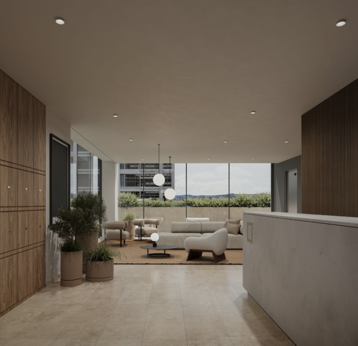 - Lobby con recepción elegante.