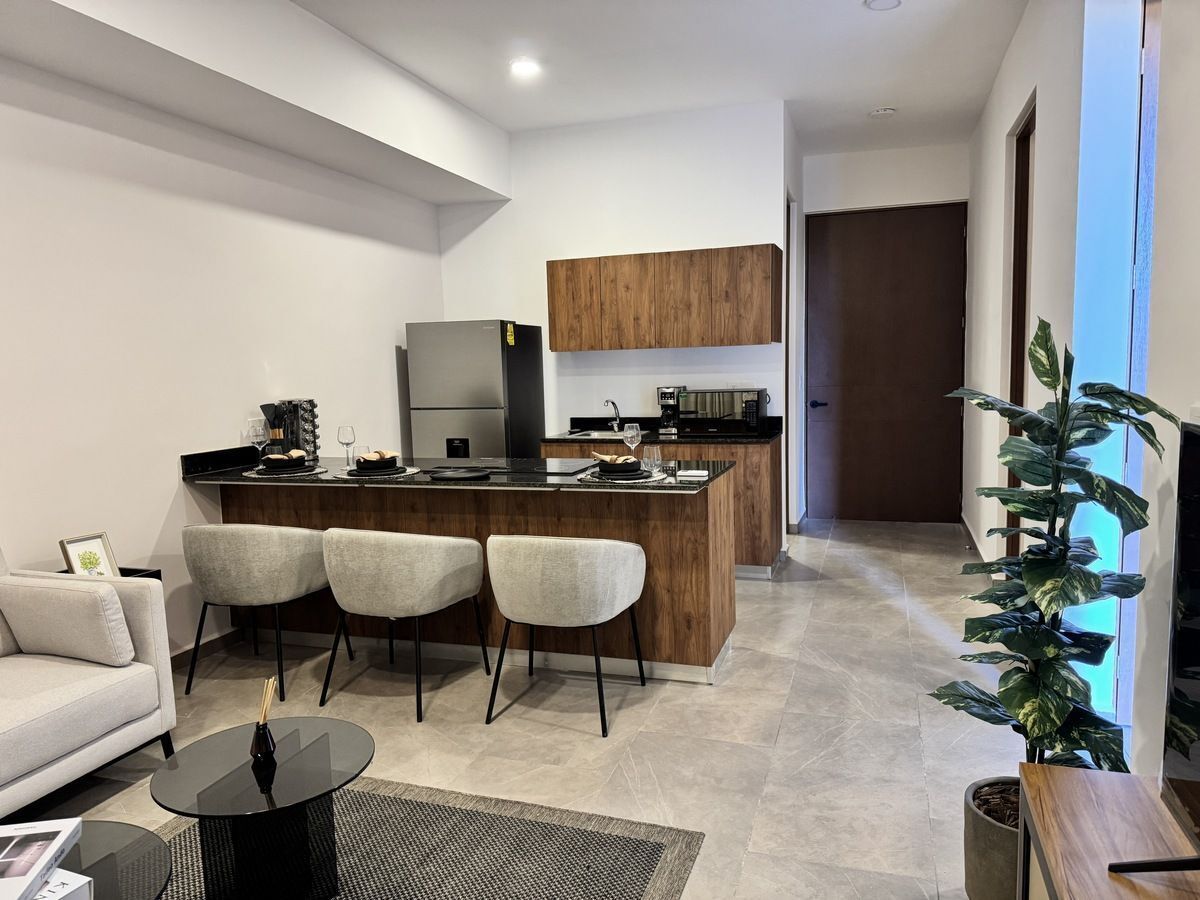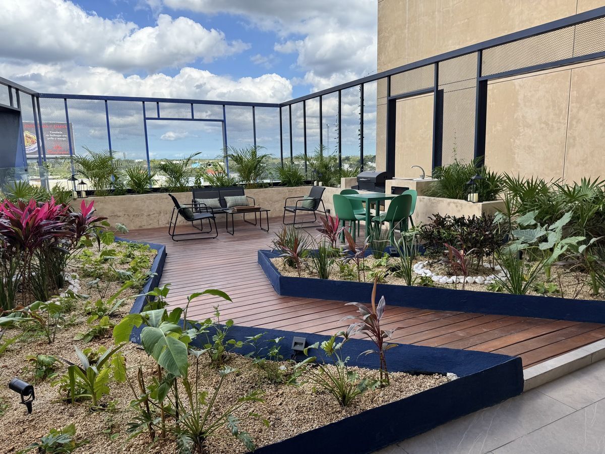 Cuenta con amenidades como: Lobby, elevadores, gym, área de Cowork, área de Basura, estacionamiento Techado y al aire libre, área verdes, roof Top, asadores, jardín Pet friendly, área comercial en Planta Baja