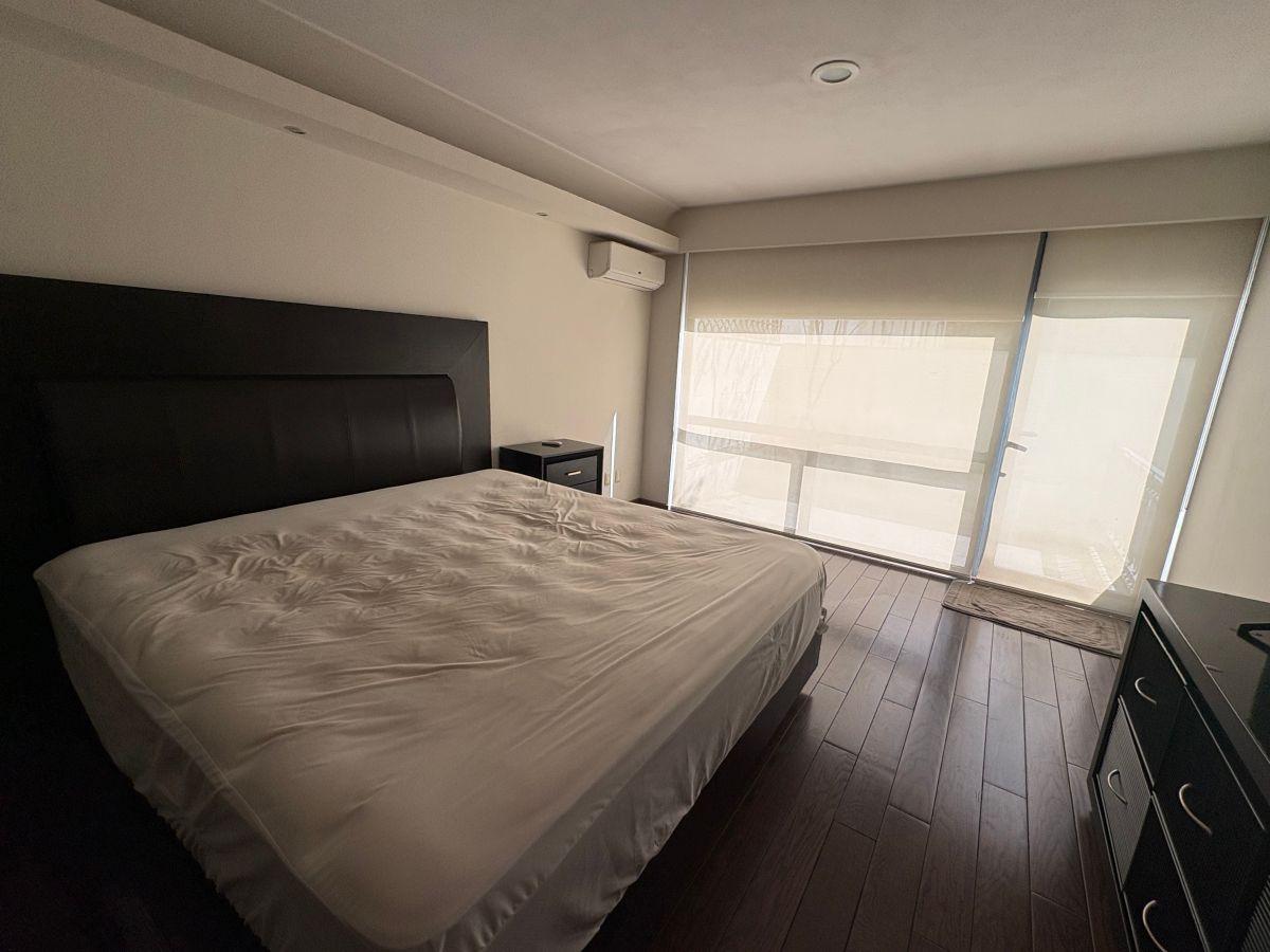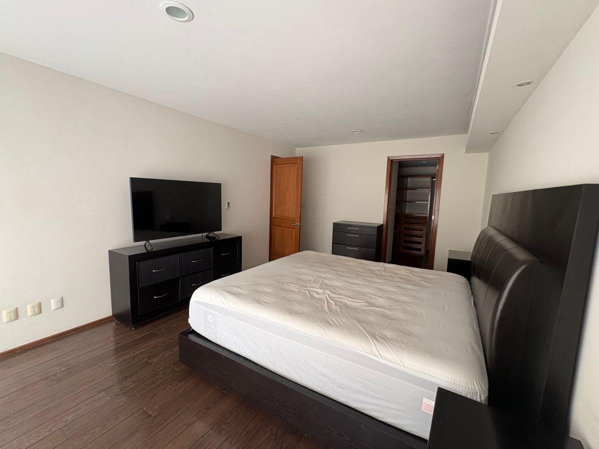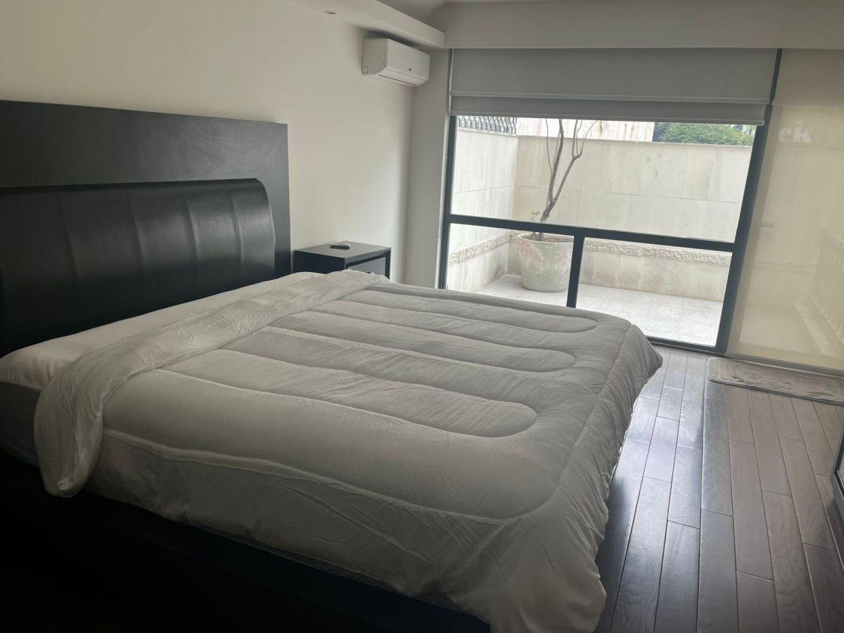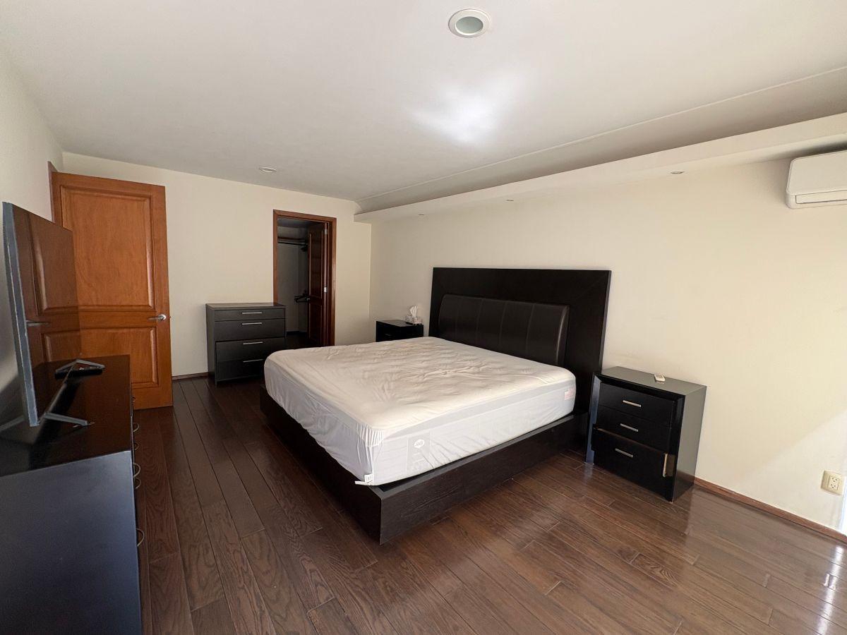 Excelente departamento de estilo francés AMUEBLADO, con magnífica ubicación a una calle de reforma, 190 M2 en una planta elevador al piso, sala, comedor, balcón, 2 recámaras, las 2 con vestidor y baño completo,la principal con una hermosa terraza, los vestidores con carpintería de alta calidad, cocina integral con barra de granito, refrigerador, horno , horno de microondas, área de lavado con lavadora y secadora, cuarto de servicio con baño completo, persianas, 3 estacionamientos, vigilancia las 24 hrs, con recepción.