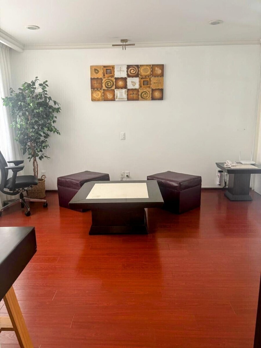 Increible departamento Amueblado , pisos de madera, luminoso, amplio, 2 recamaras con opción a una tercer recámara, cada recamara con su baño, baño de visitas, sala de tv, estudio, cuarto de lavado, seguridad 24 hrs, excelente ubicación, salón de fiestas único en la zona en exclusivo edificio, únicamente 12 deptos. Cerca del supermercado, colegios,restaurants y bancos.