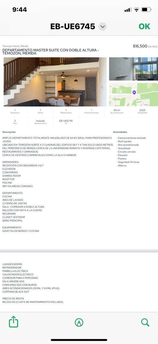 $16,500.00 (CUOTA DE MANTENIMIENTO INCLUIDA)