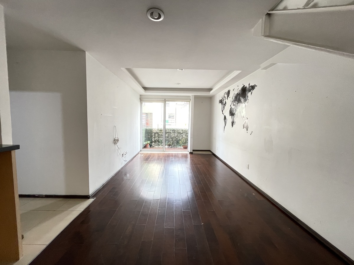 Departamento ubicado en 6to piso de 2 niveles: 2 Recámaras, 2 Baños completos, Sala-Comedor con Balcón, Cocina Integral bien iluminada.