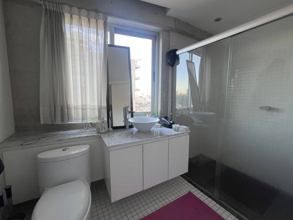 El edificio cuenta con amenidades premium: gimnasio, alberca, vapor, salón de eventos, garden y vigilancia 24/7.
