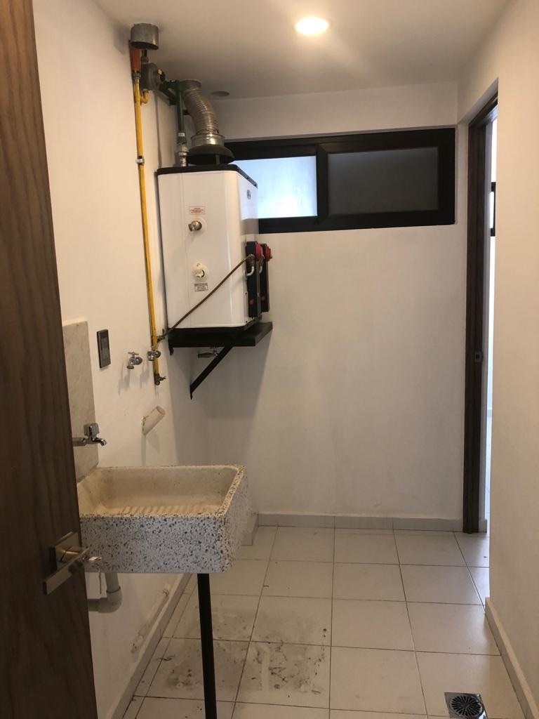 Departamento nuevo de 2 recamaras cada una con baño, sala comedor, cocina abierta, tiene un balcón de buen tamaño en área social, cuarto de servicio con baño privado, cuarto de lavado, vigilancia las 24 horas, dos lugares de estacionamiento .